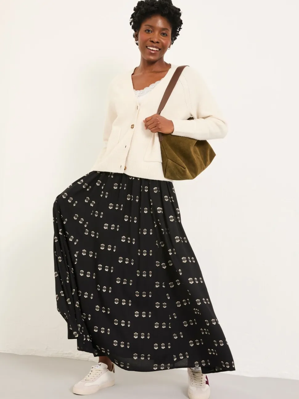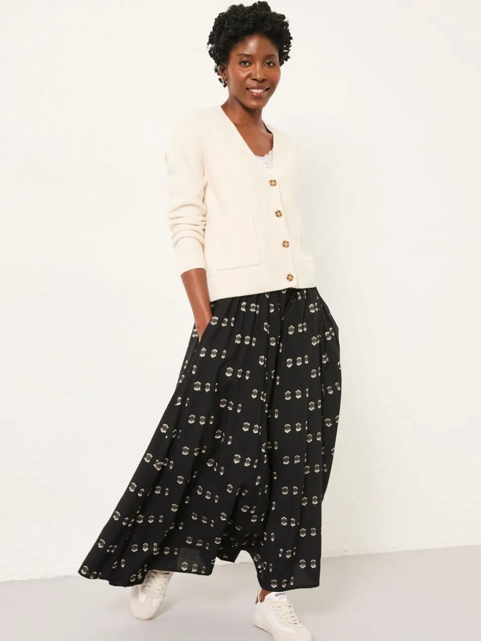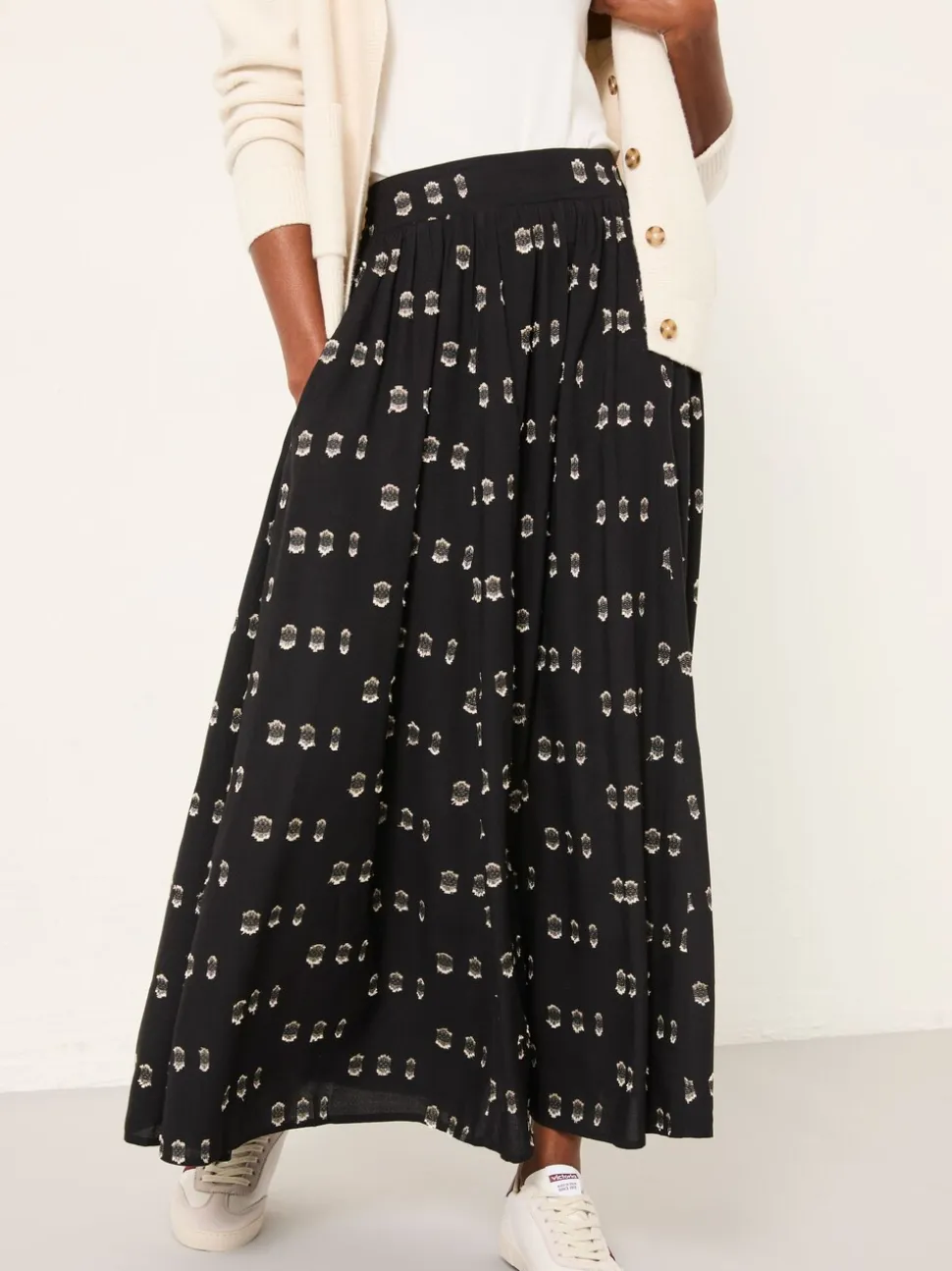 Taille régulière jusqu’à l’ourlet 36″ / 91cm. Lavable en machine. 97% LENZING™ ECOVERO™ Viscose, 2% Polyester, 1% Fibre métallisée.