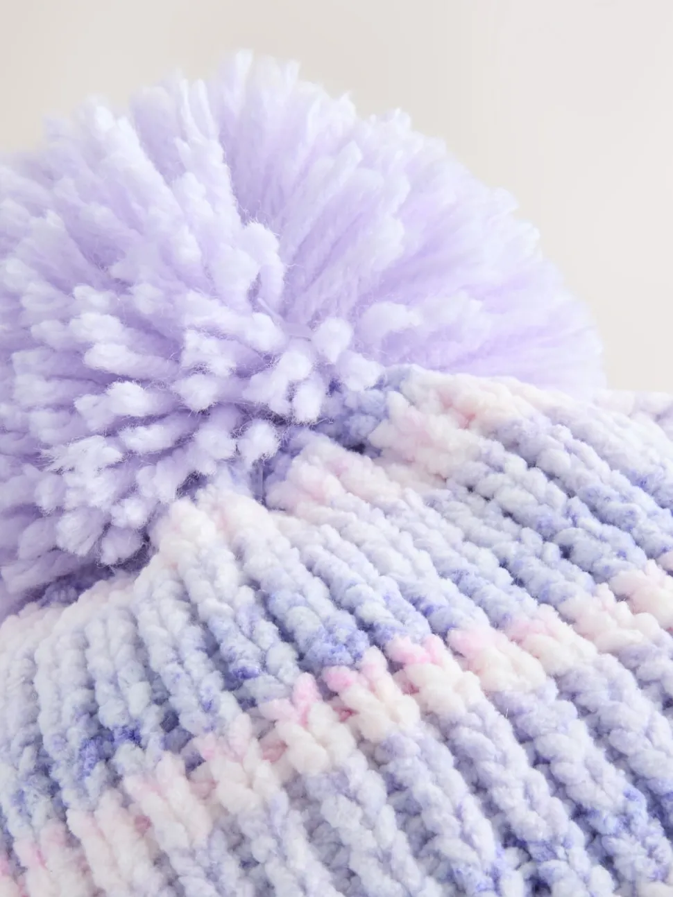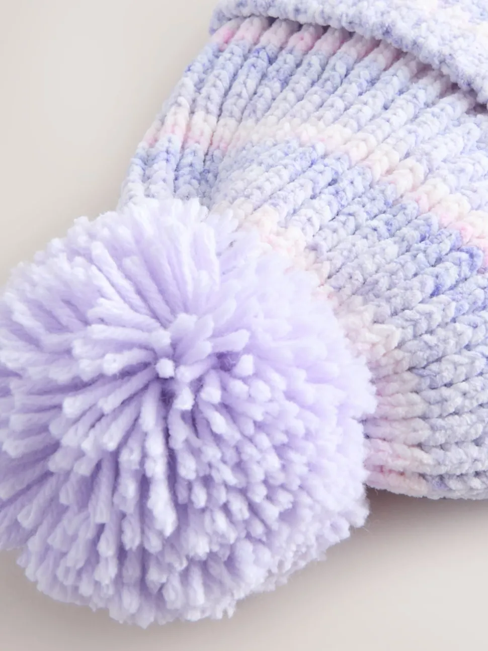 Lilas ton sur ton – Chapeau à pompons en maille chenille bébé (0mois-2ans)