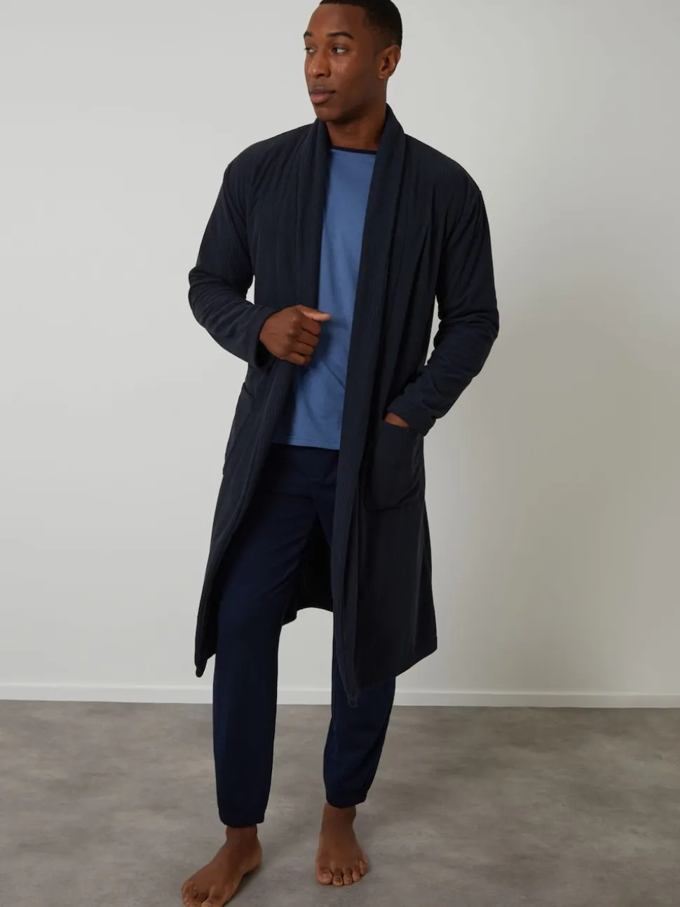 marine – Robe de chambre Threadbare gaufrée en polaire