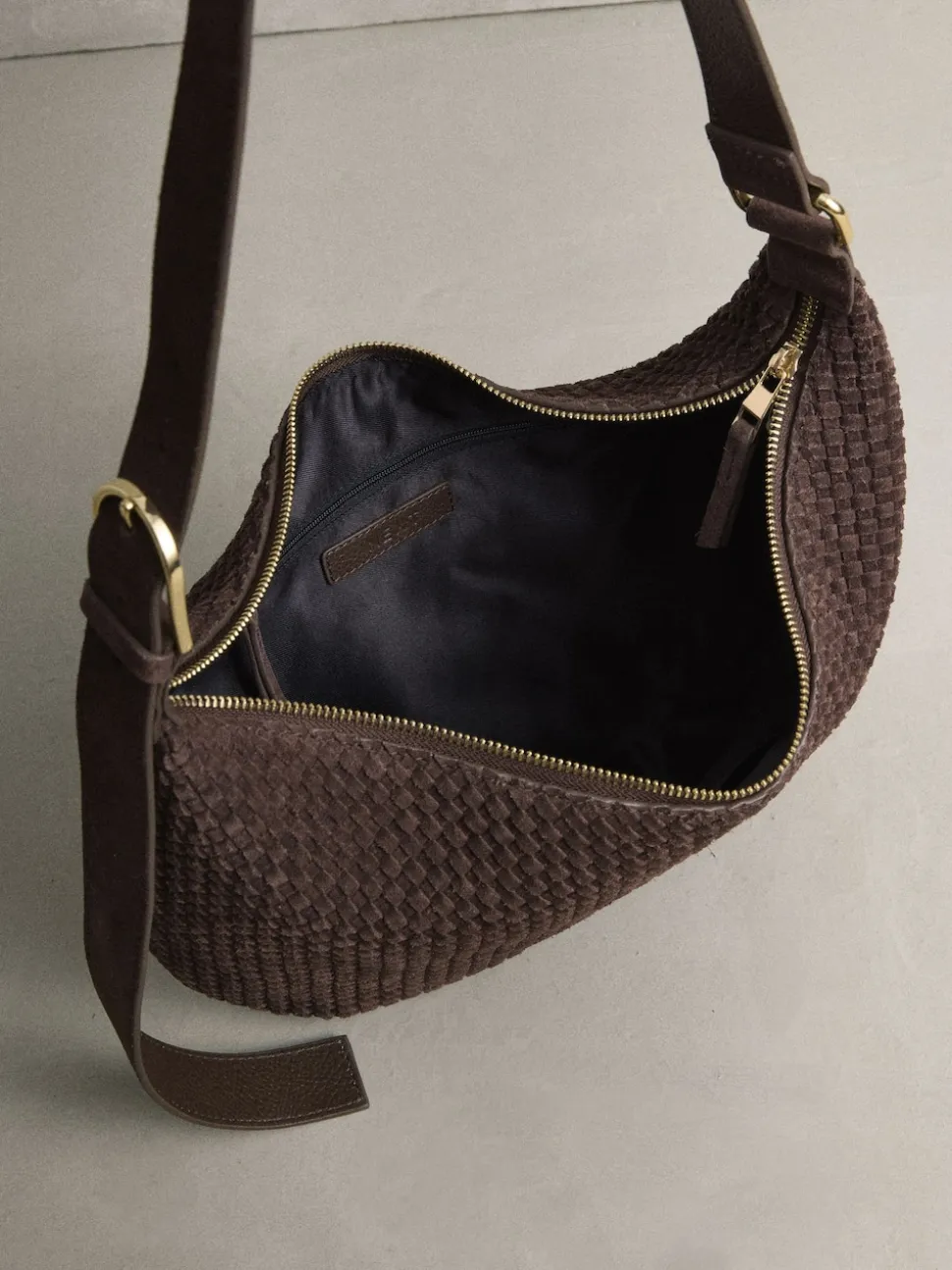 Marron chocolat – N. Premium sac bandoulière en Daim tissé