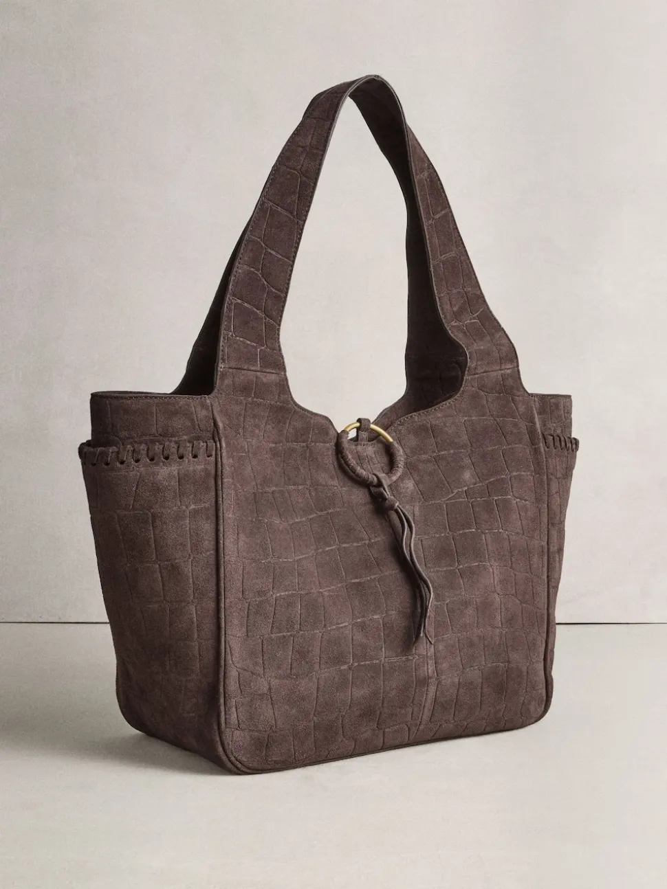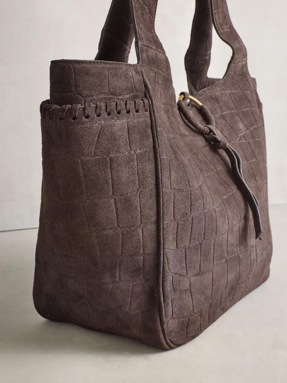 Marron chocolat – Sac bandoulière en Daim effet croco