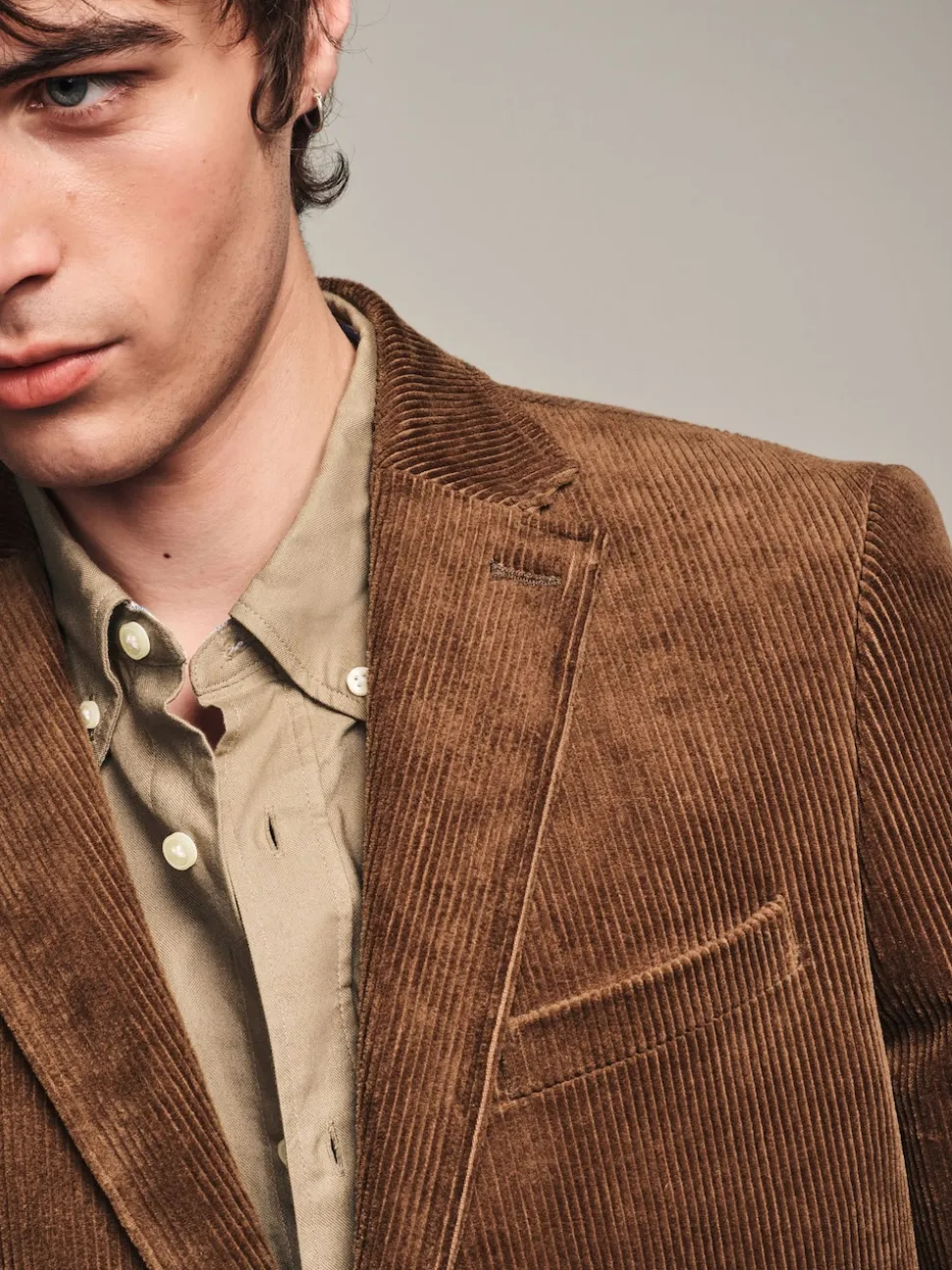 Marron neutre – Blazer en velours côtelé