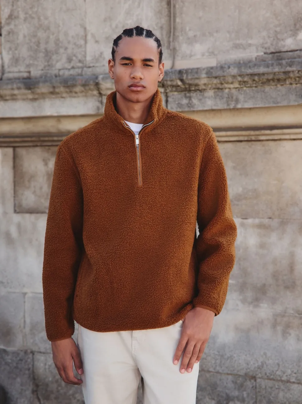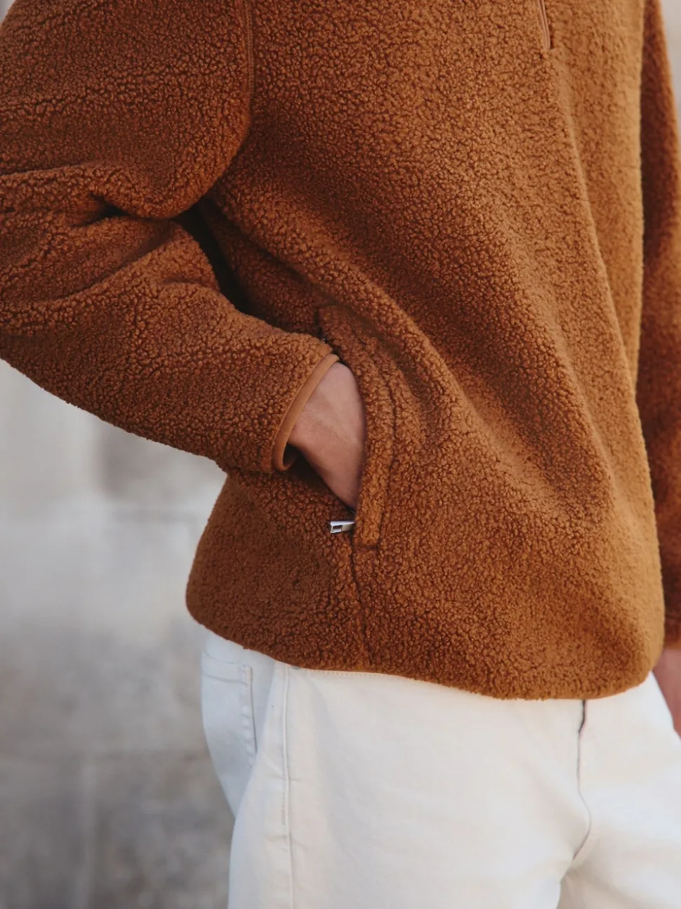 Marron rouille – Polaire en peau de mouton à col zippé