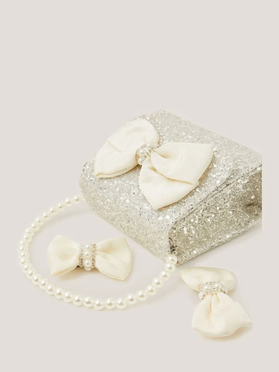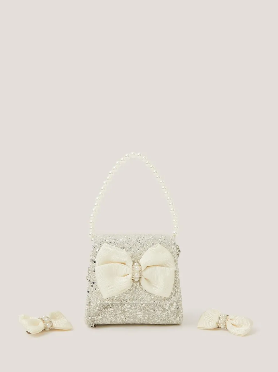 Monsoon Ensemble sac à main et pinces à cheveux avec nœud en perles pailletées