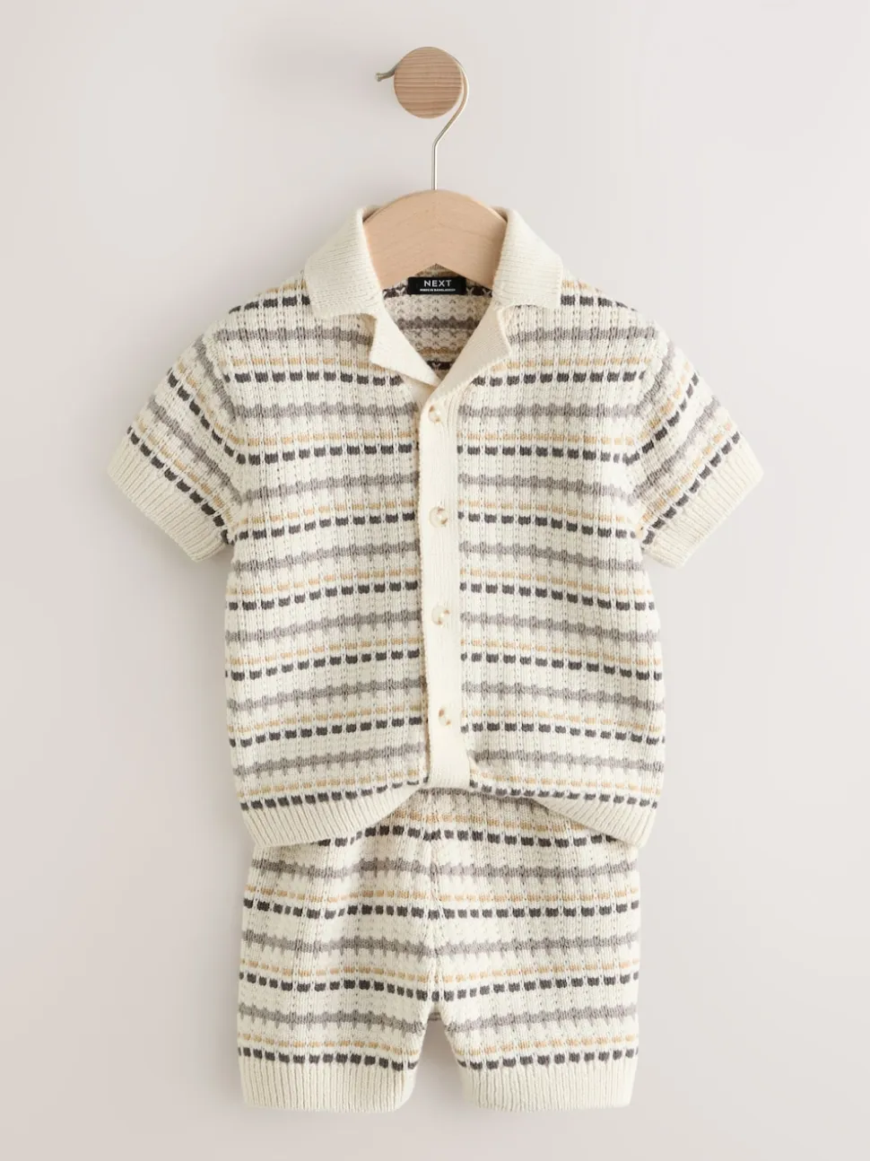 neutre – Ensemble polos et shorts texturés en maille à col révéré (3mois-10ans)