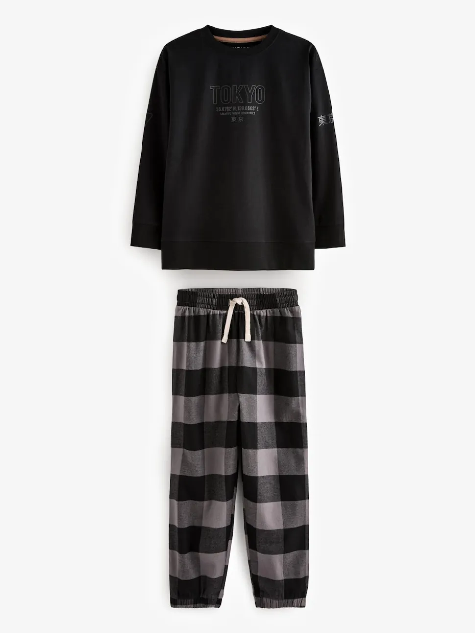 Neutre/Noir – Lot de 3 pyjamas tissés à carreaux (3-16ans)