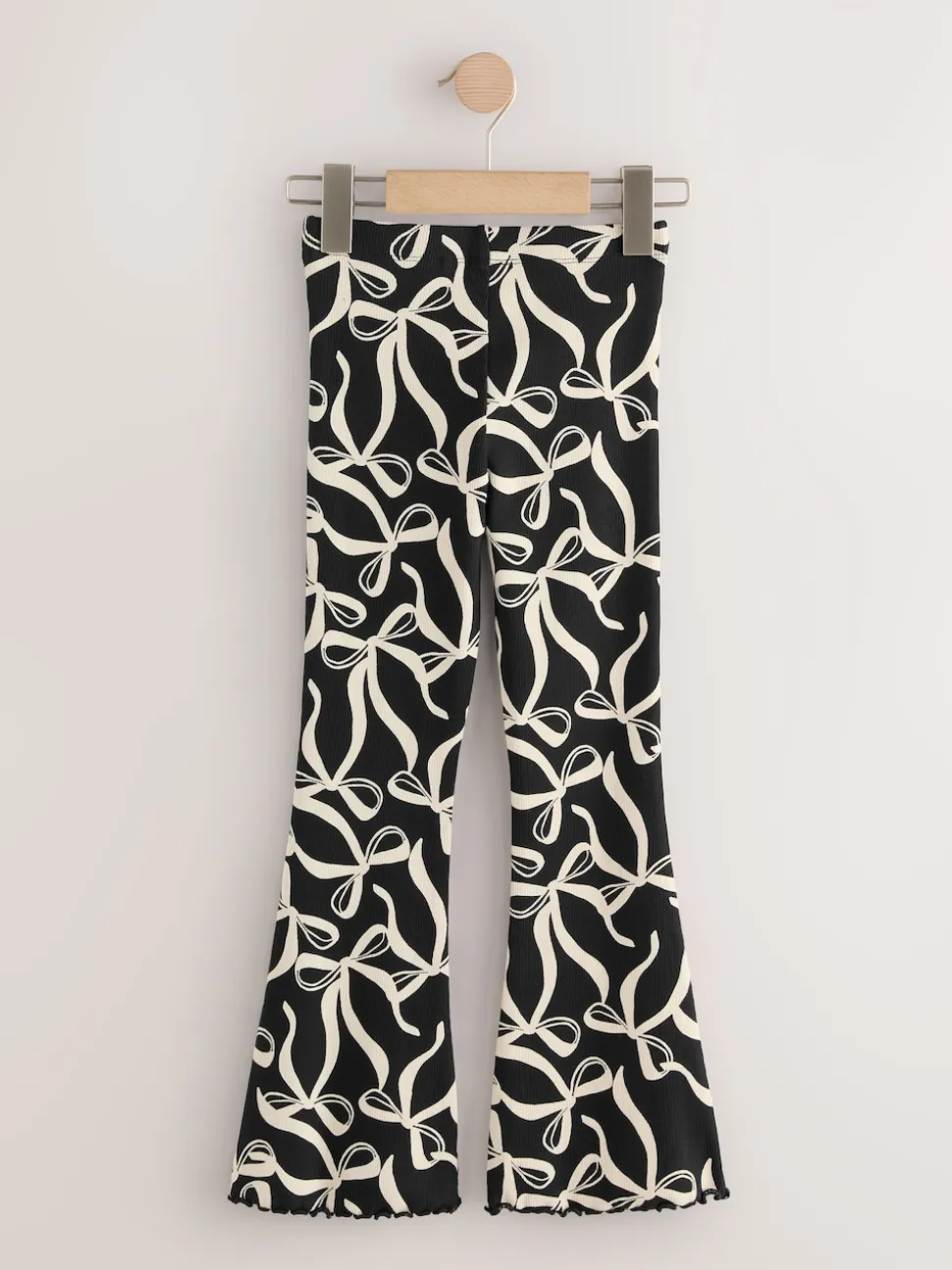 Nœud noir/blanc – Leggings évasés à côtes (3-16ans)