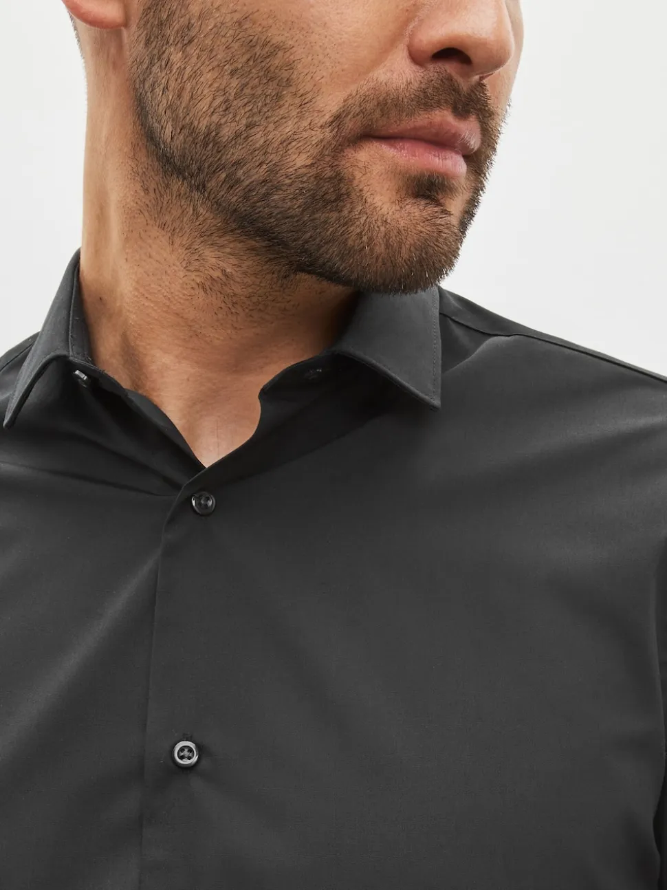 Noir – Ajustement régulier – Chemise intelligente à double poignet facile d’entretien