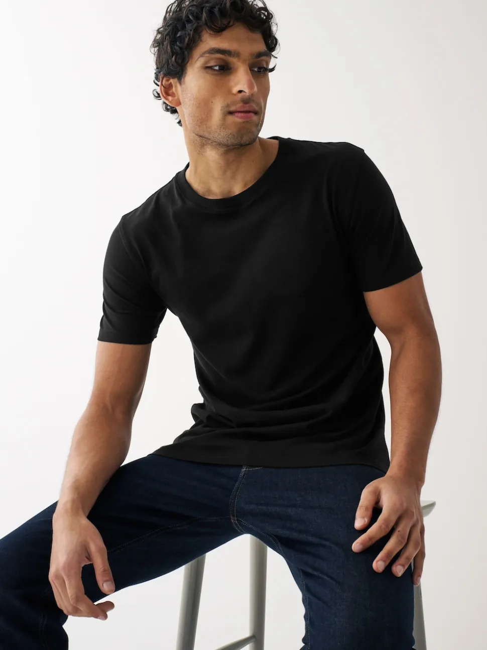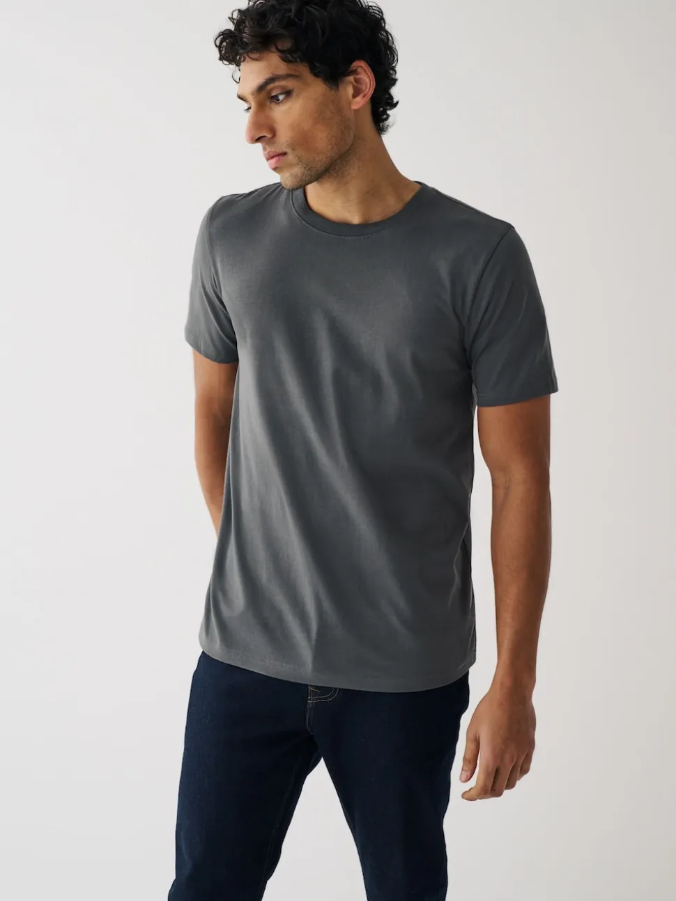 5 x T-shirt Fusain, Noir, Marine, Blanc et Denim 100% Coton. T-shirt Gris Marl 90% Coton, 10% Viscose.