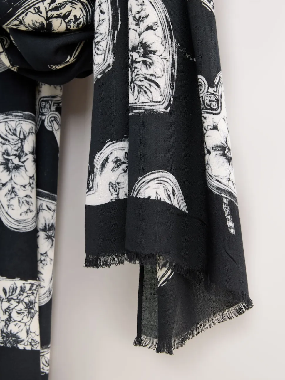 Noir/Blanc – Écharpe légère imprimé médaillon mono