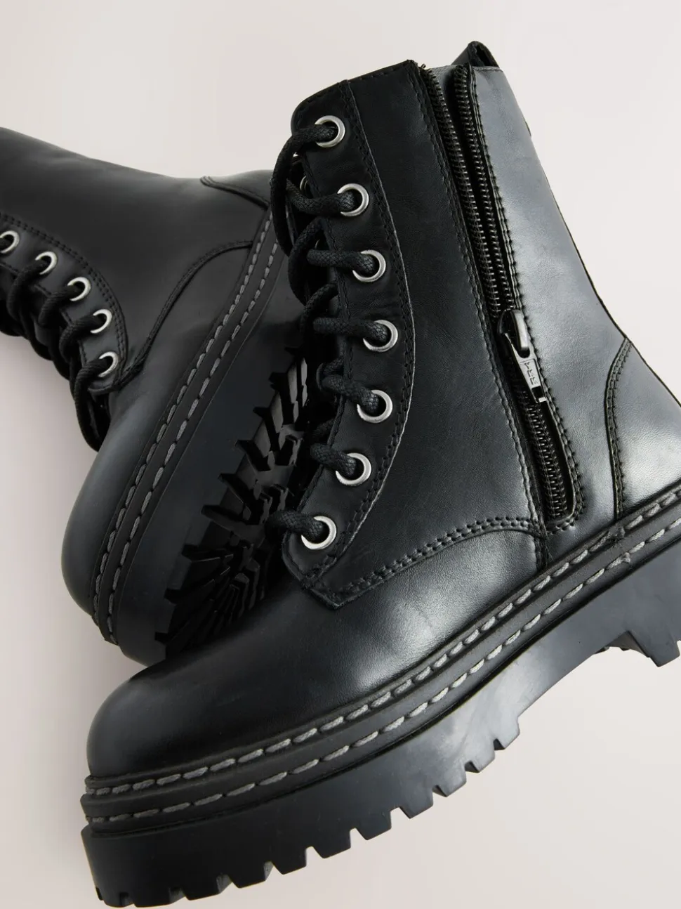 Noir – Bottines en cuir à semelle épaisse et lacets