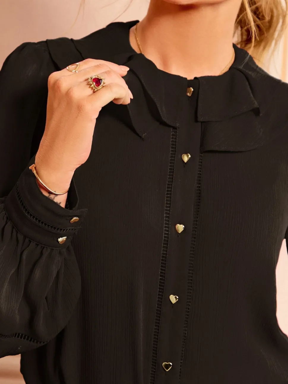 Noir – Chemisier Love & Roses manches longues à col volanté