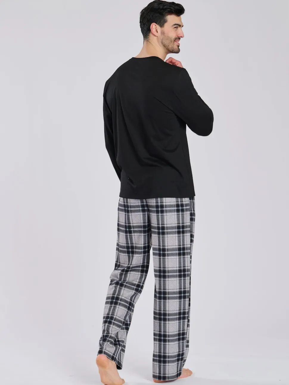 Noir – Col ras du cou – Loungeable Ensemble pyjama long en micropolaire et pantalon à carreaux