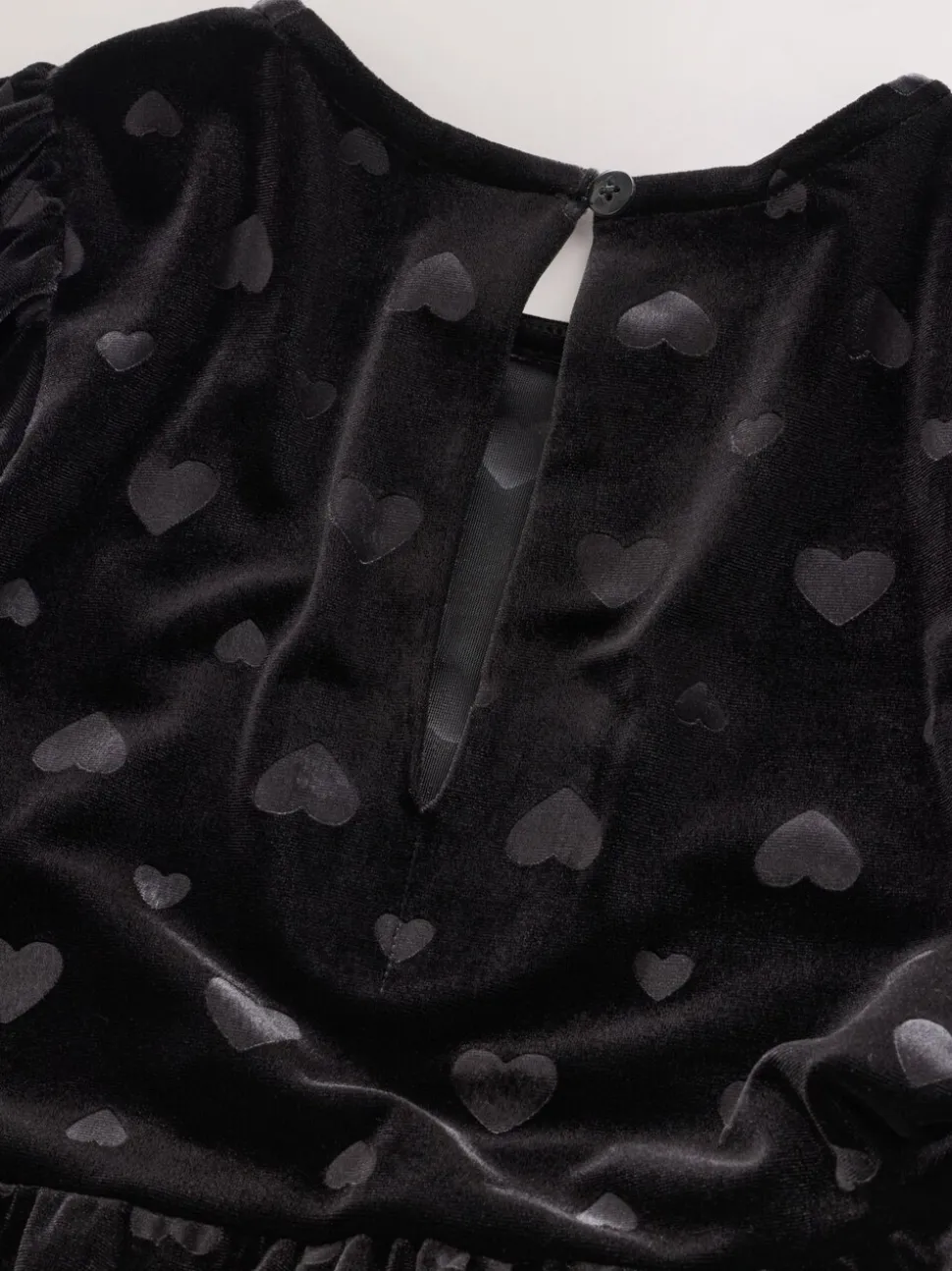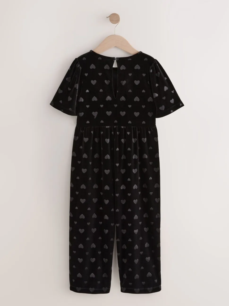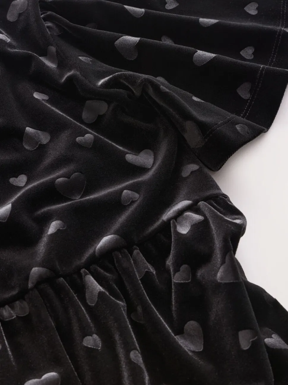 Noir – Combinaison en velours à motif cœur en relief (3-16ans)