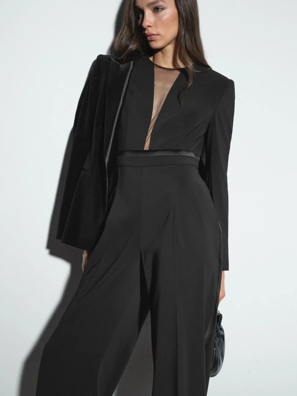 Noir – Combinaison Reiss Evora à décolleté plongeant et manches fendues