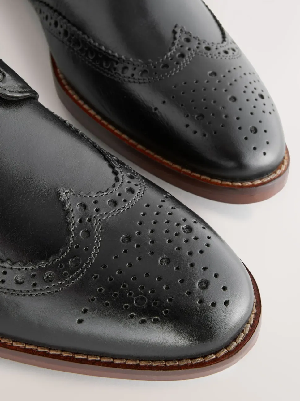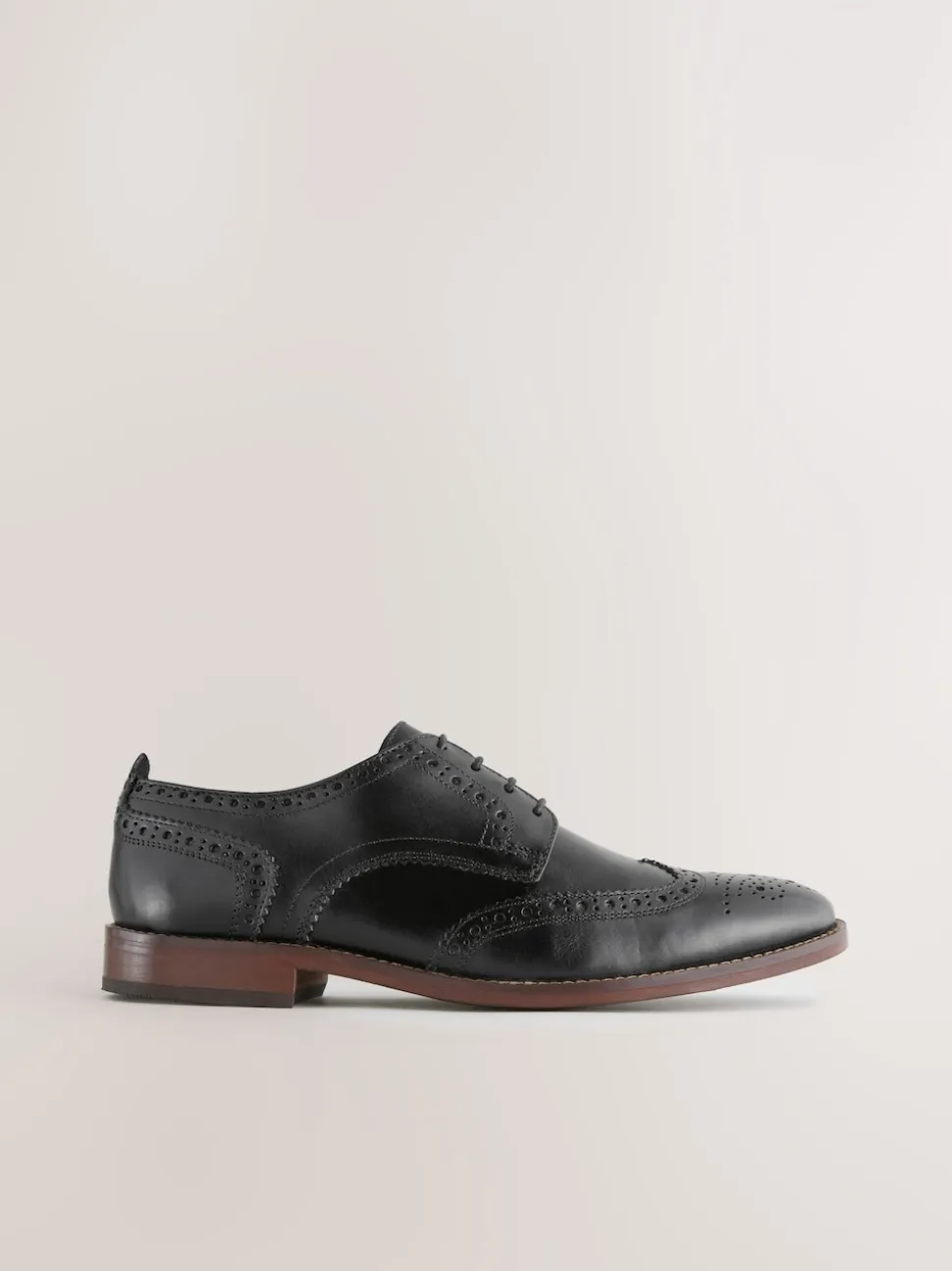 Noir – Coupe classique – Chaussures Brogue en cuir à semelle contrastante