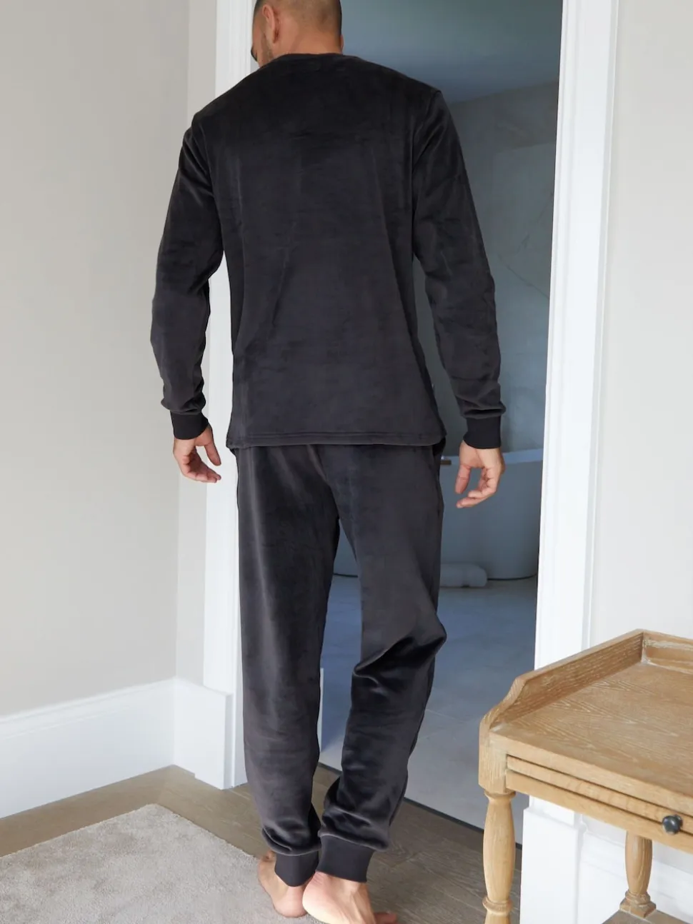 Noir – Ensemble de vêtements de détente en velours Soft Touch de Threadbare