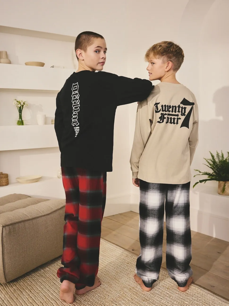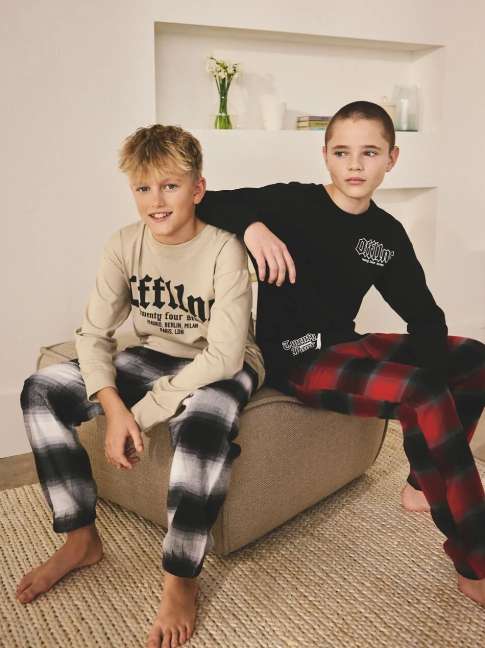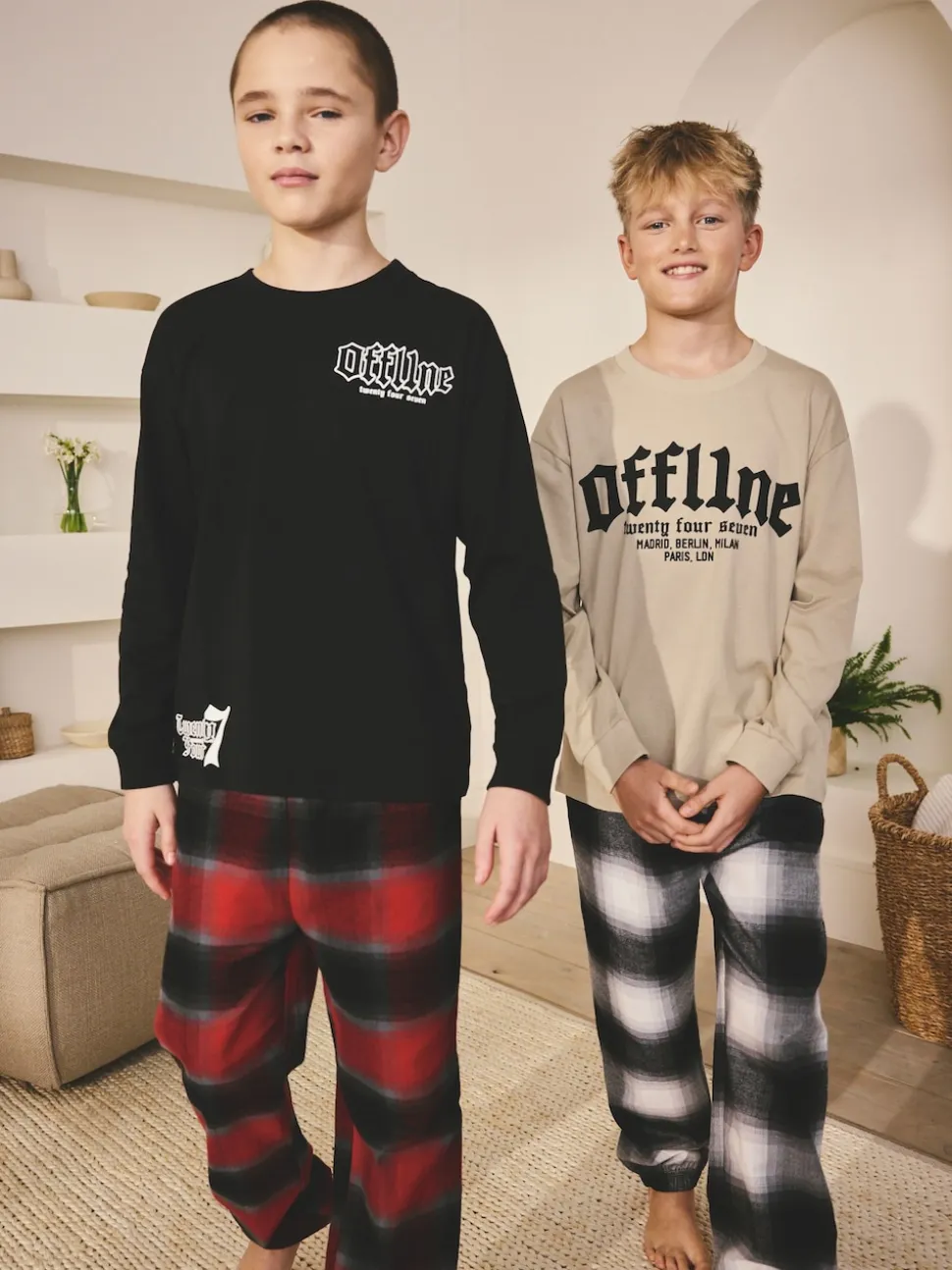 Noir/Rouge/Beige Sable Offline – Lot de 2 pyjamas en tissu à carreaux à manches longues (3-16ans)