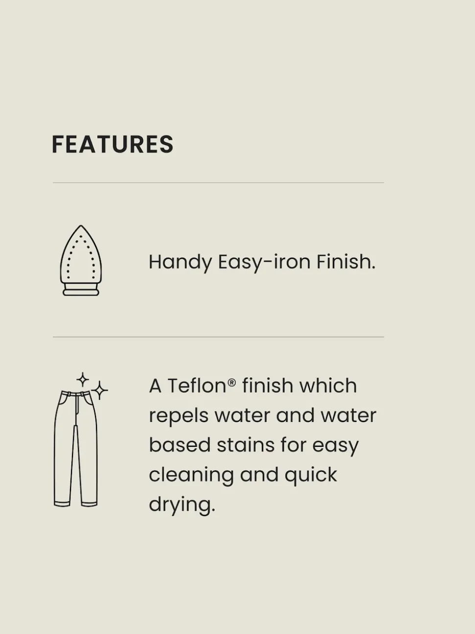 | Size | 28W x 29L (UK 28 S), 28W x 31L (UK 28 R), 30W x 29L (UK 30 S), 30W x 31L (UK 30 R), 32W x 29L (UK 32 S), 34W x 29L (UK 34 S), 36W x 29L (UK 36 S), 38W x 29L (UK 38 S) |