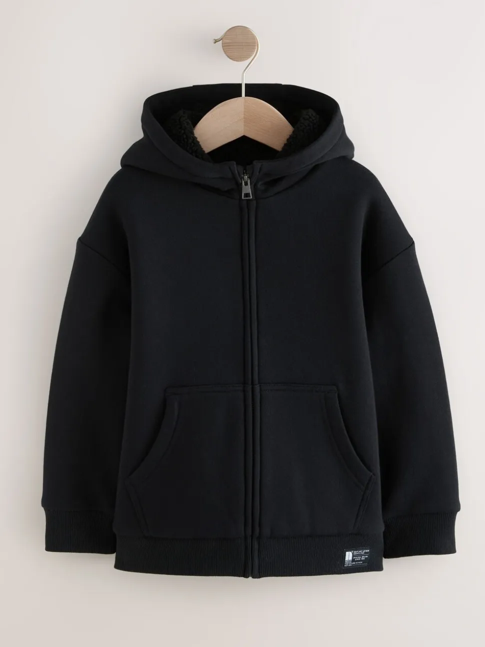 Noir – Sweat à capuche zippé en polaire Borg (3-16ans)
