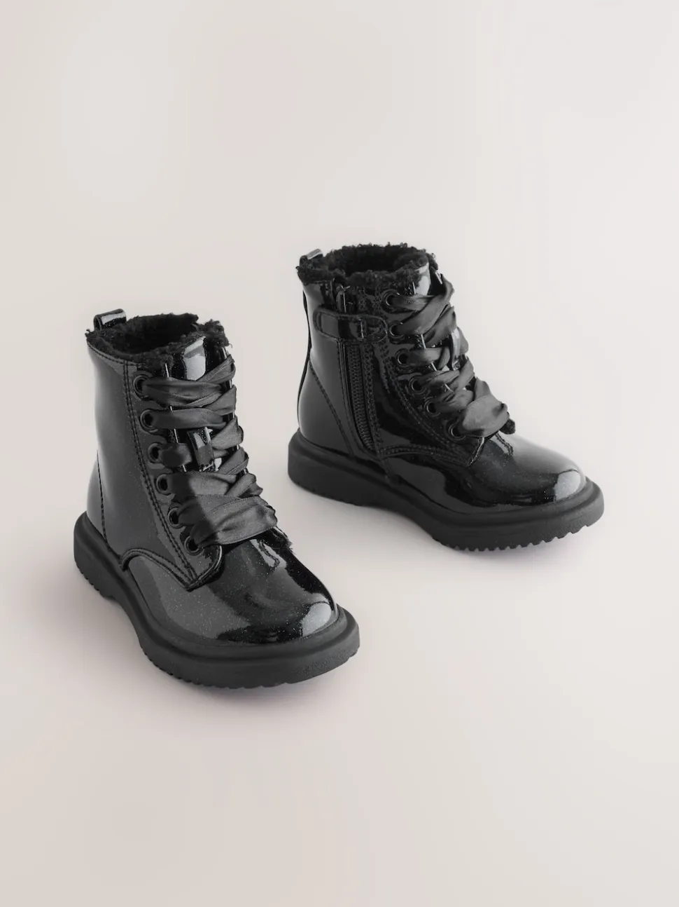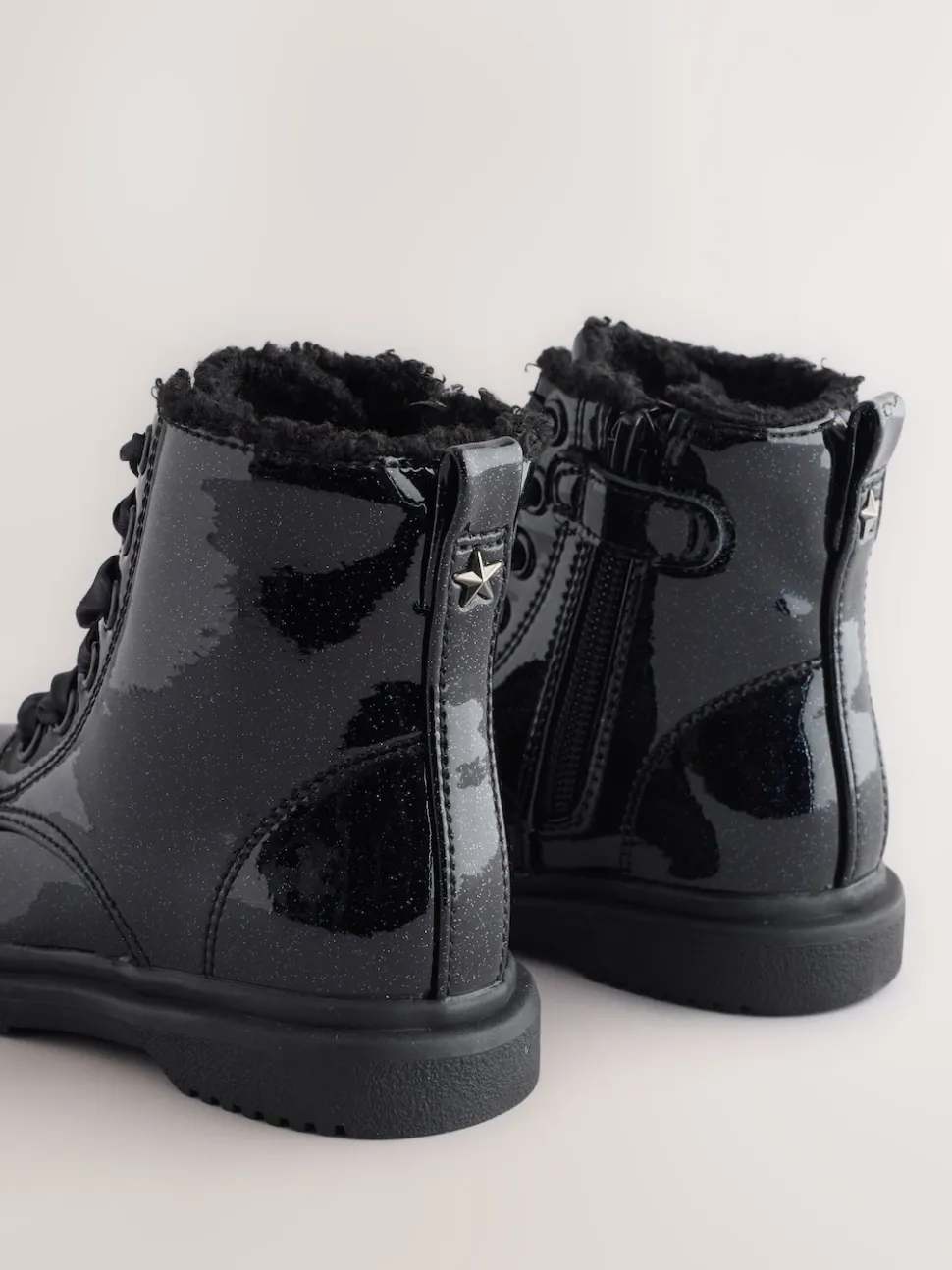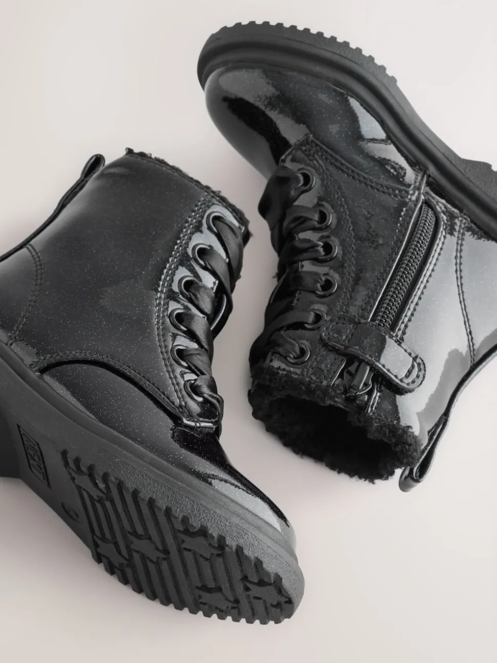 Noir verni scintillant – Bottines à lacets