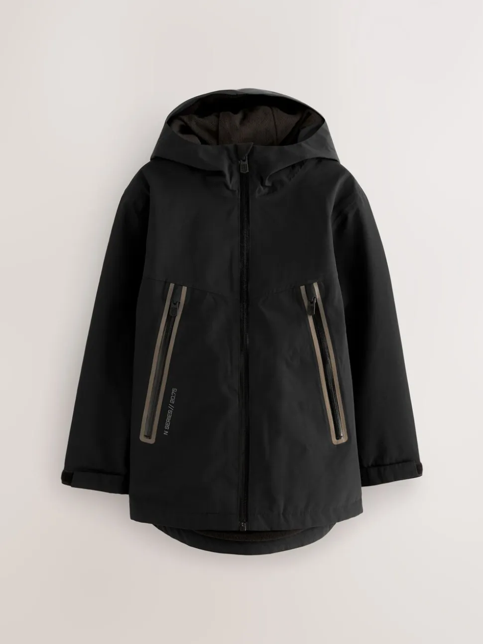 Noir – Veste à capuche imperméable doublée de polaire (3-17ans)
