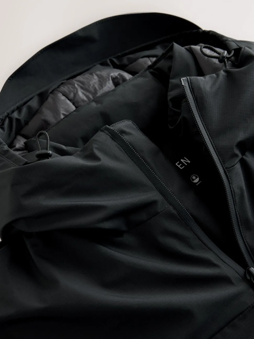 Coquille 100% Polyester recyclé. Doublure 100% Nylon. Ouate 100% Polyester recyclé.