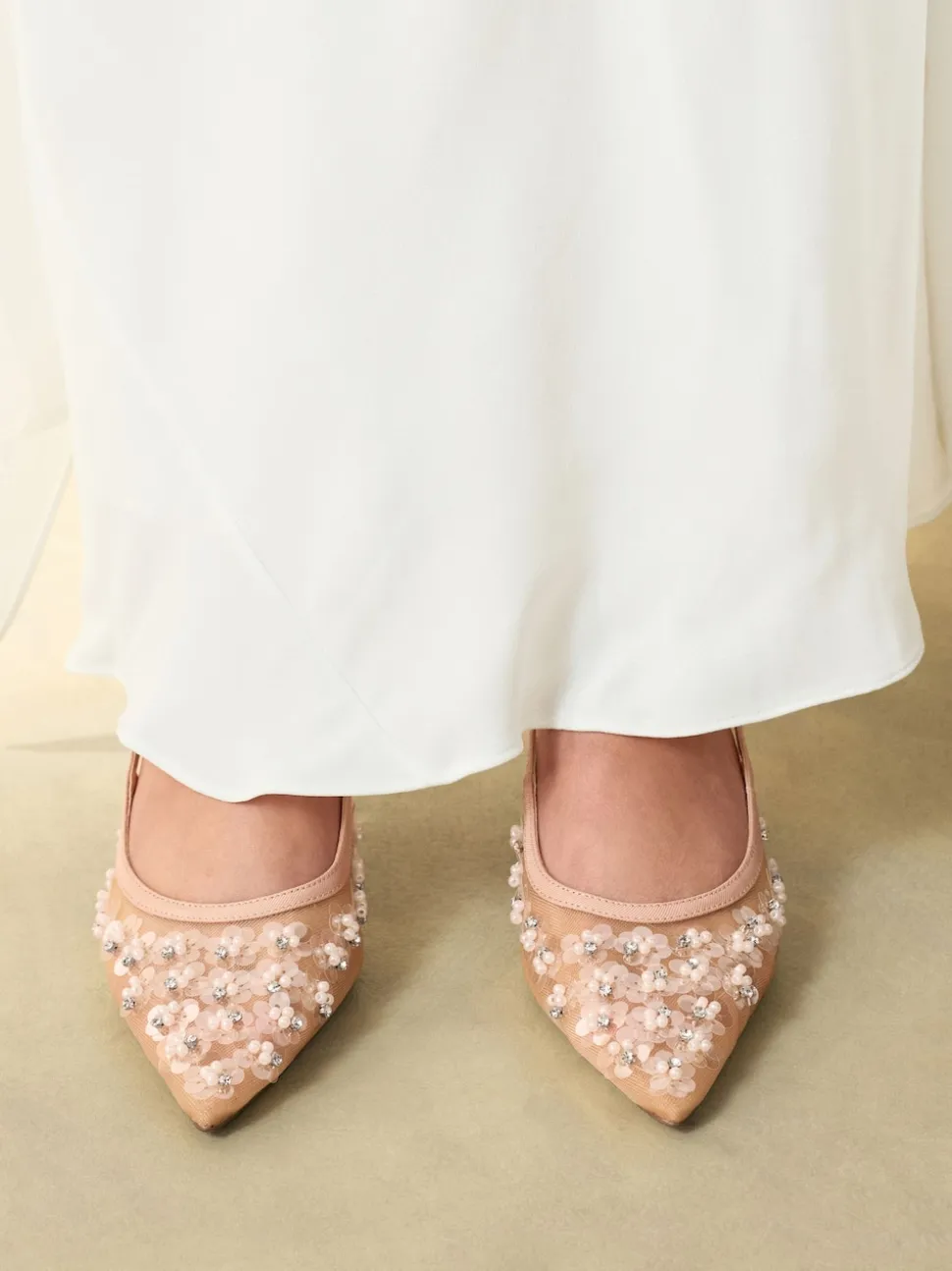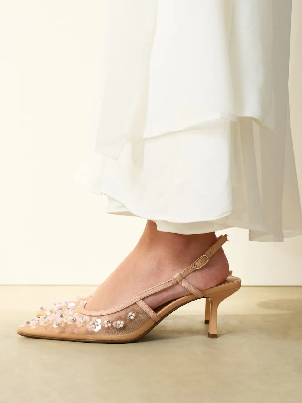 Nude Avec ornements – Chaussures à talons Forever Comfort® à bride arrière en maille pointue