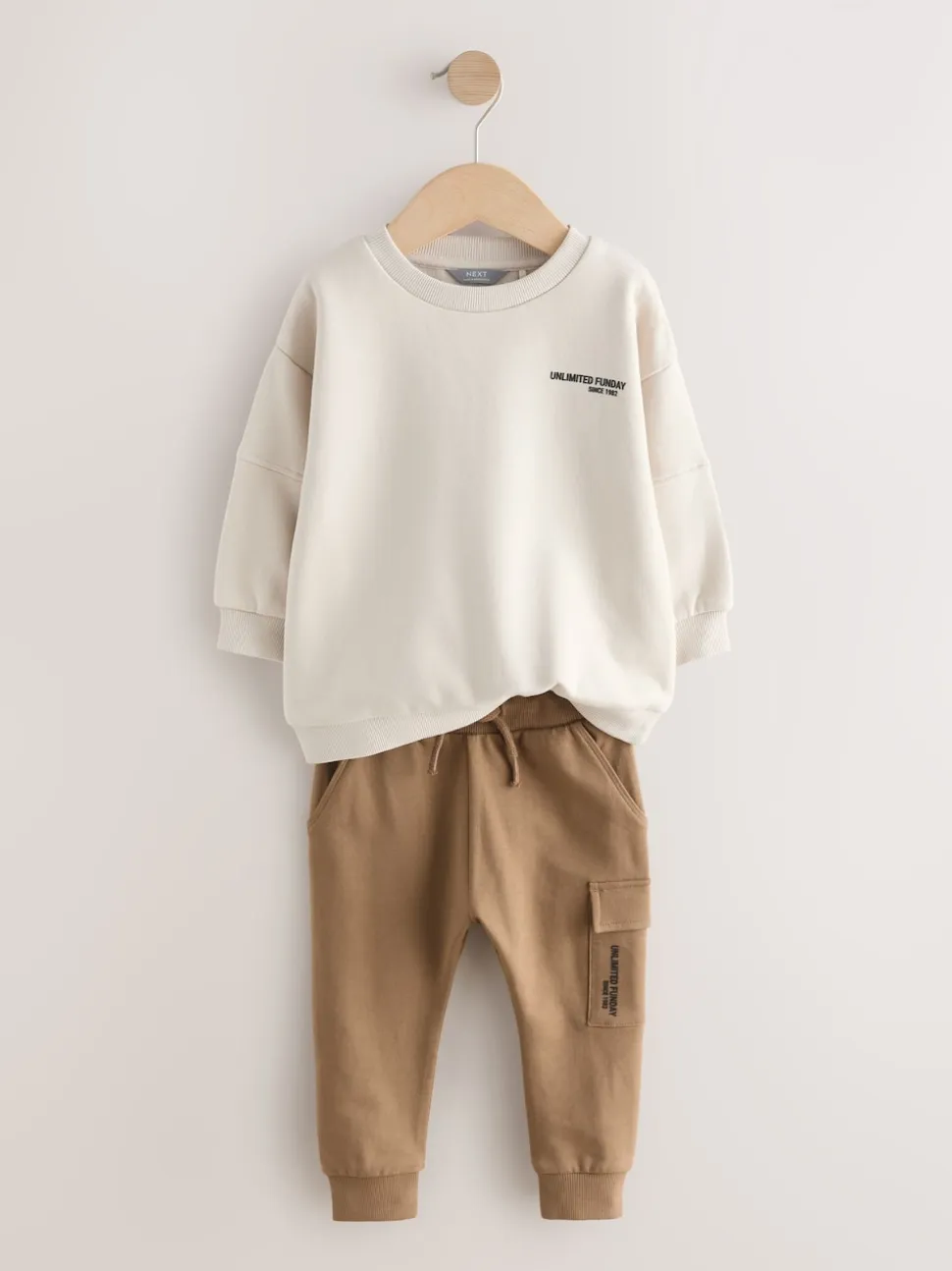 Off White écru – Ensemble sweat-shirt utilitaire et jogging super fin (3mths-7yrs)