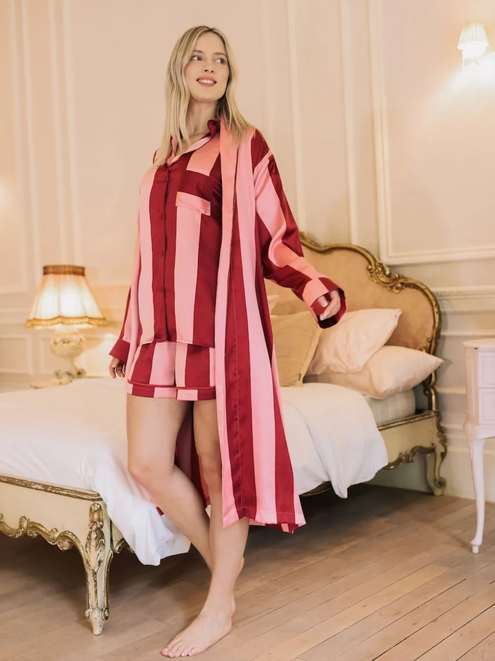 Peignoir grand-père en satin à rayures framboise Your Nibs