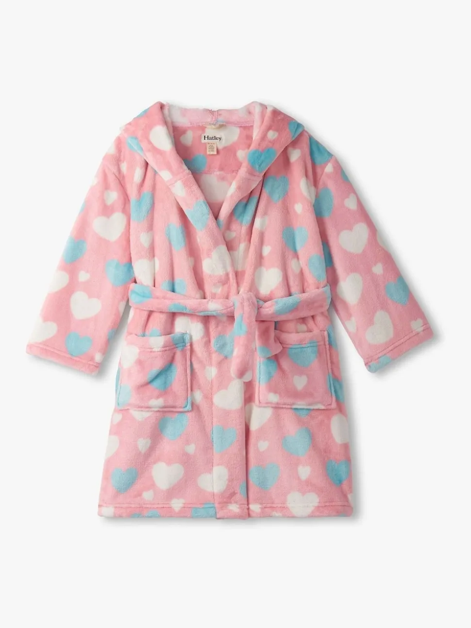 Peignoir Hatley rose en polaire duveteuse à gros cœurs