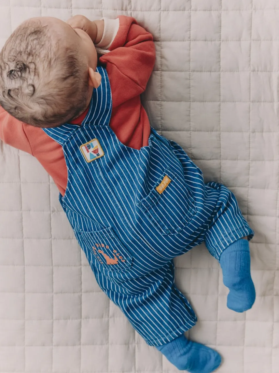 Lavable en machine. Matière principale de la salopette 100% coton. Doublure : 65% polyester recyclé, 35% coton. Body 82% coton, 18% polyester recyclé. Avertissement : tenir à l’écart du feu et des flammes.