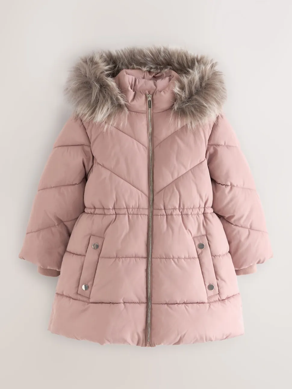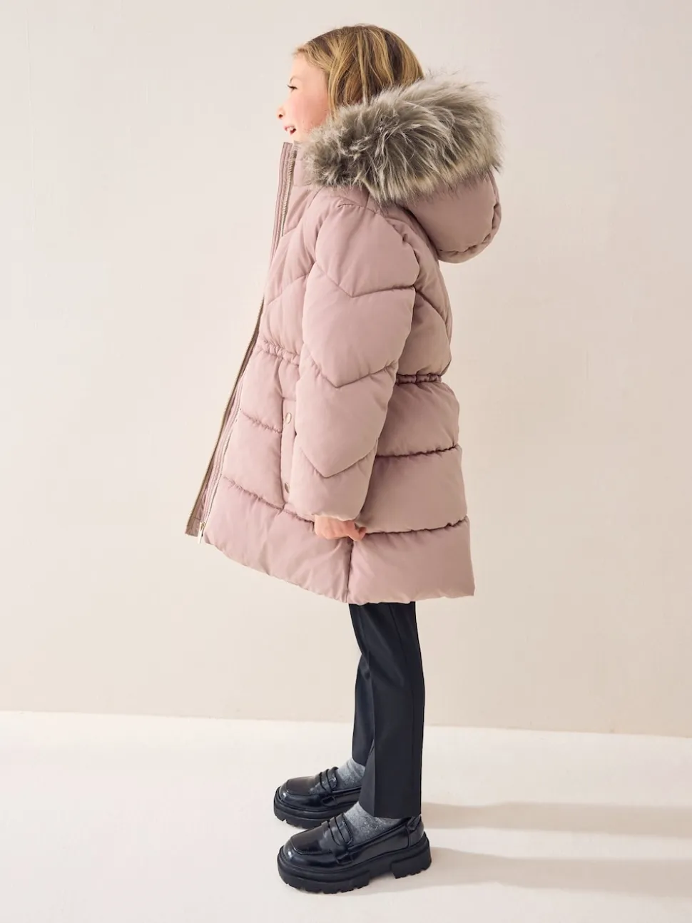 Rose caramel – Manteau matelassé bordé de fausse fourrure Résistant à la douche (3-16ans)