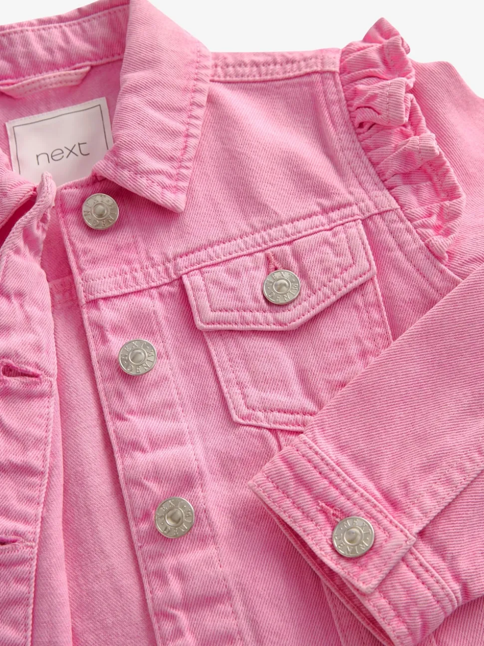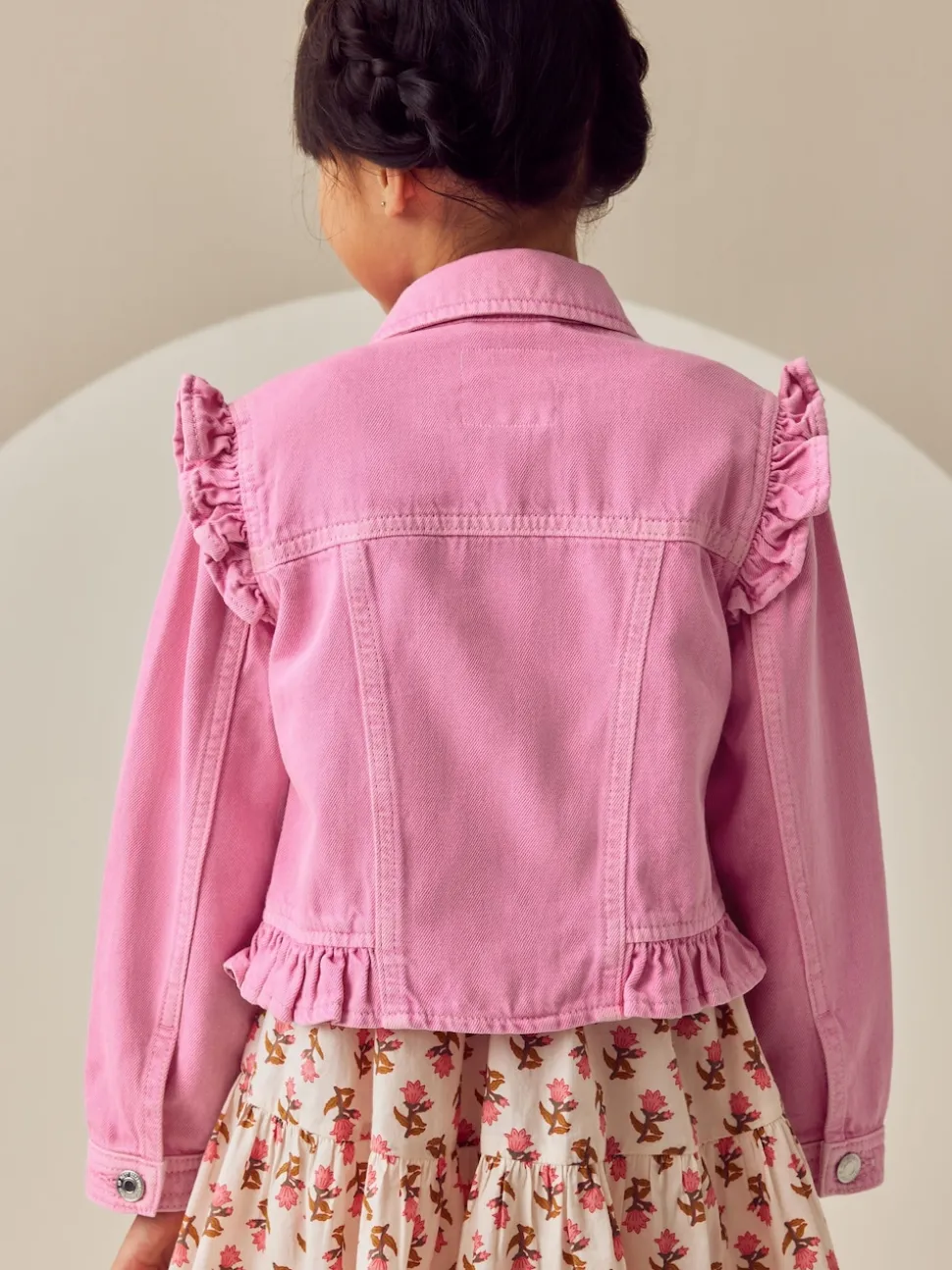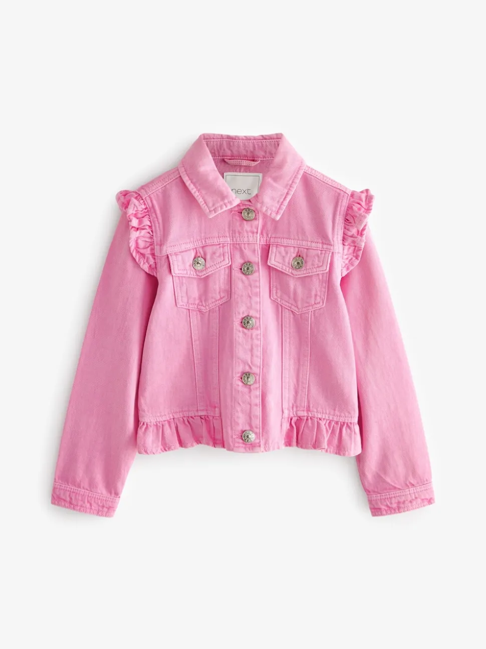 Rose vif – Veste en jean à épaules volantées (3-16ans)
