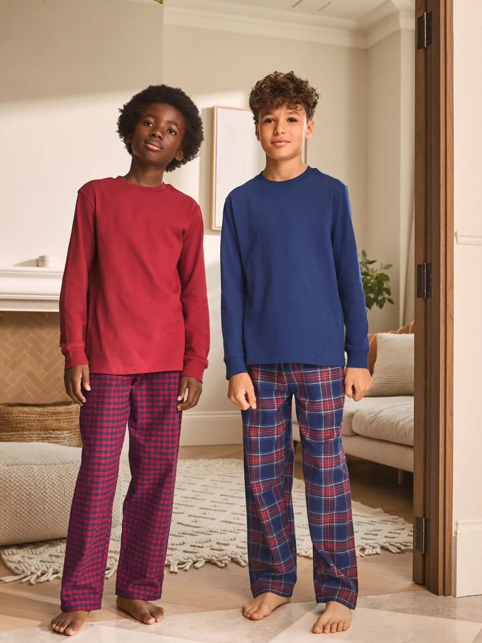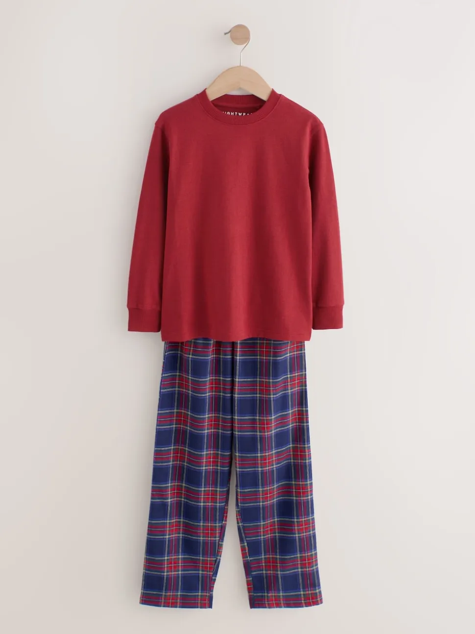 Rouge/Bleu – Lot de 2 pyjamas en tissu à carreaux à manches longues (3-16ans)