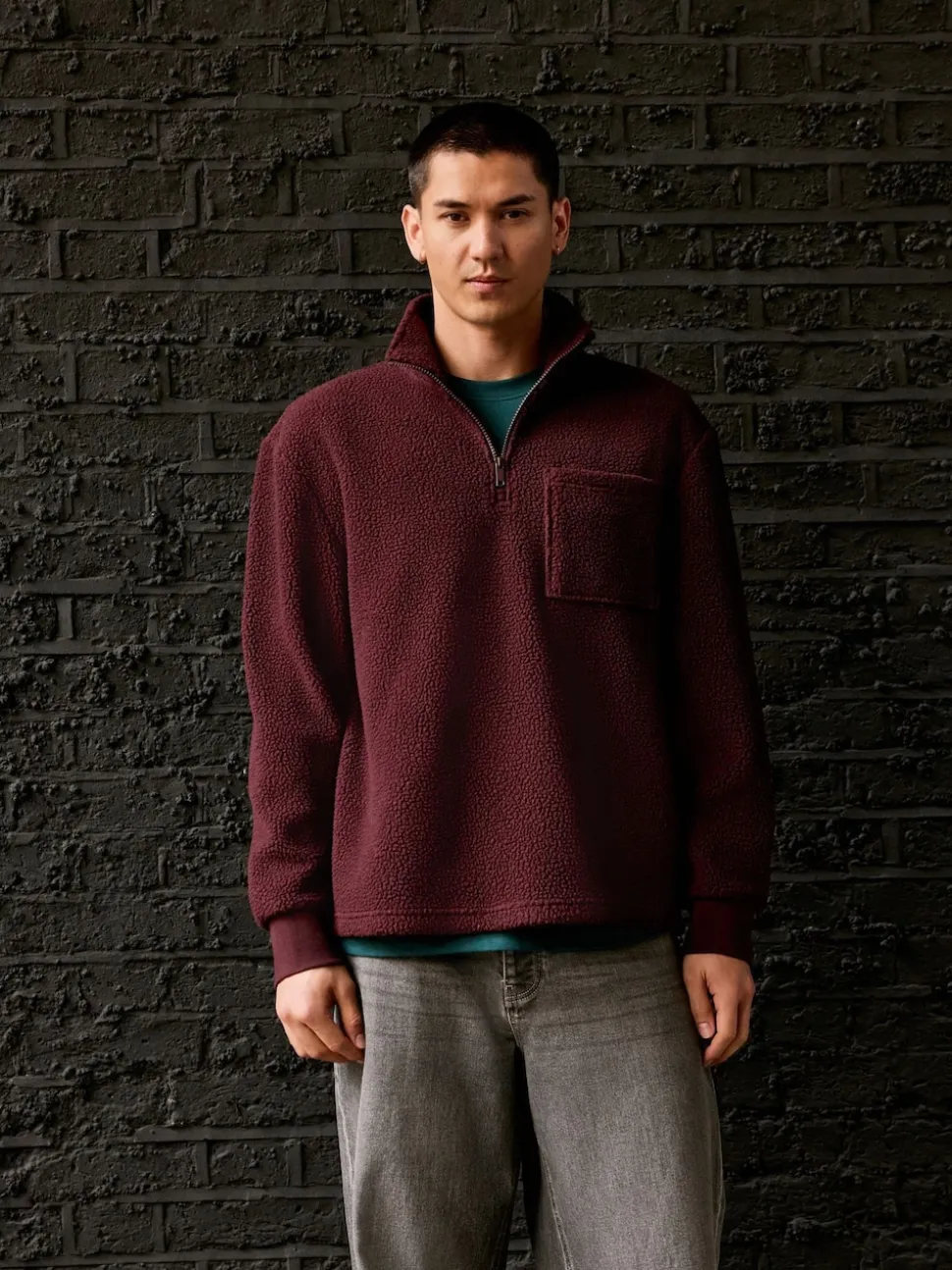 Rouge bordeaux – Quart de zip – Polaire en peau de mouton