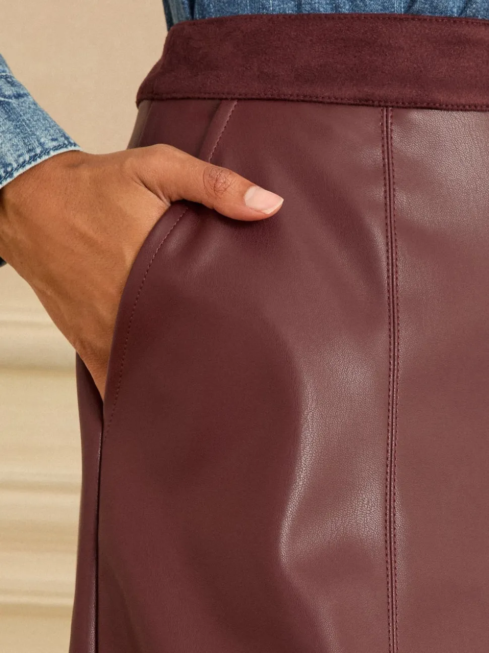 Rouge cerise – Love & Roses Jupes mi-long ajustées et flamboyantes en faux cuir