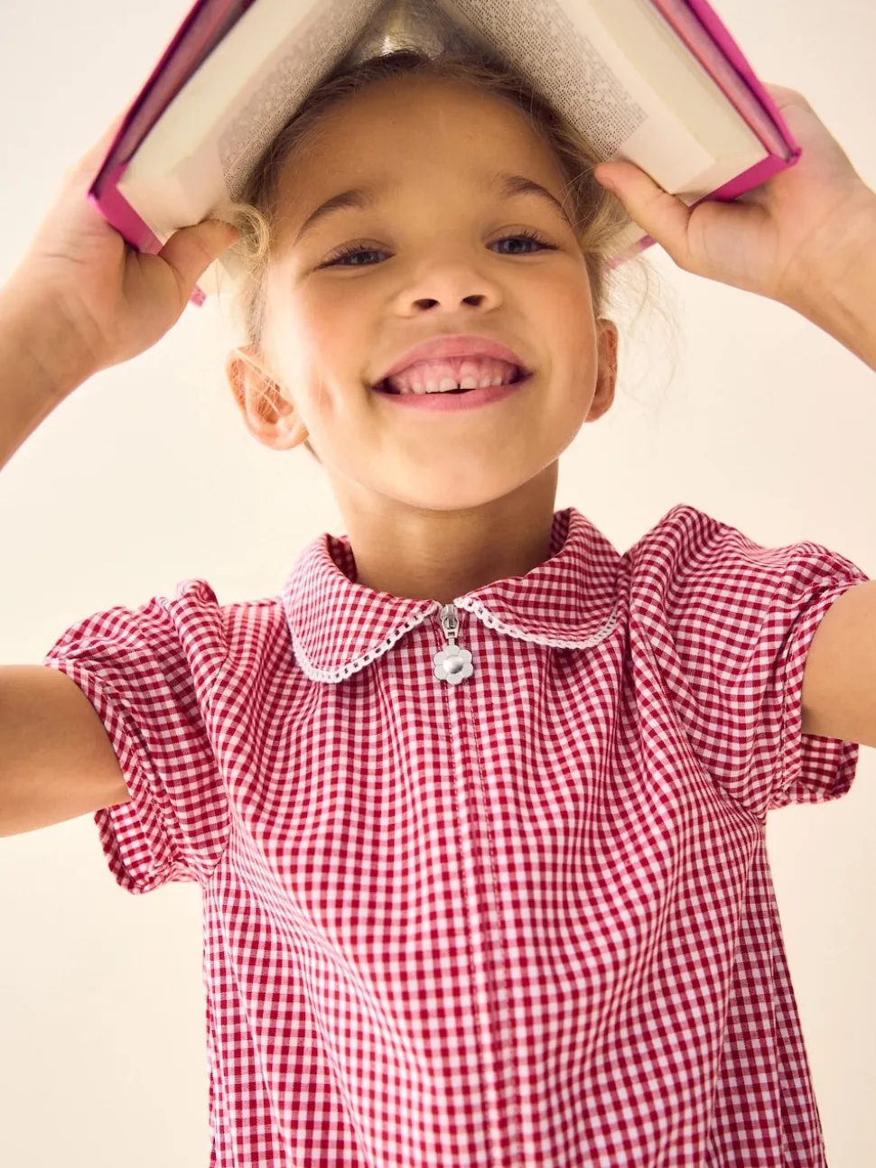Rouge – Combinaison d’école Vichy en coton riche avec fermeture éclair (3-14ans)