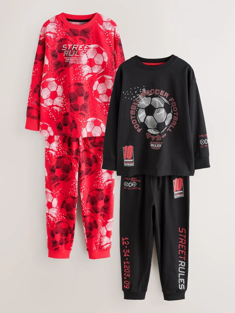 Rouge/noir motif football – Lot de 2 pyjamas à manches longues (3-16ans)
