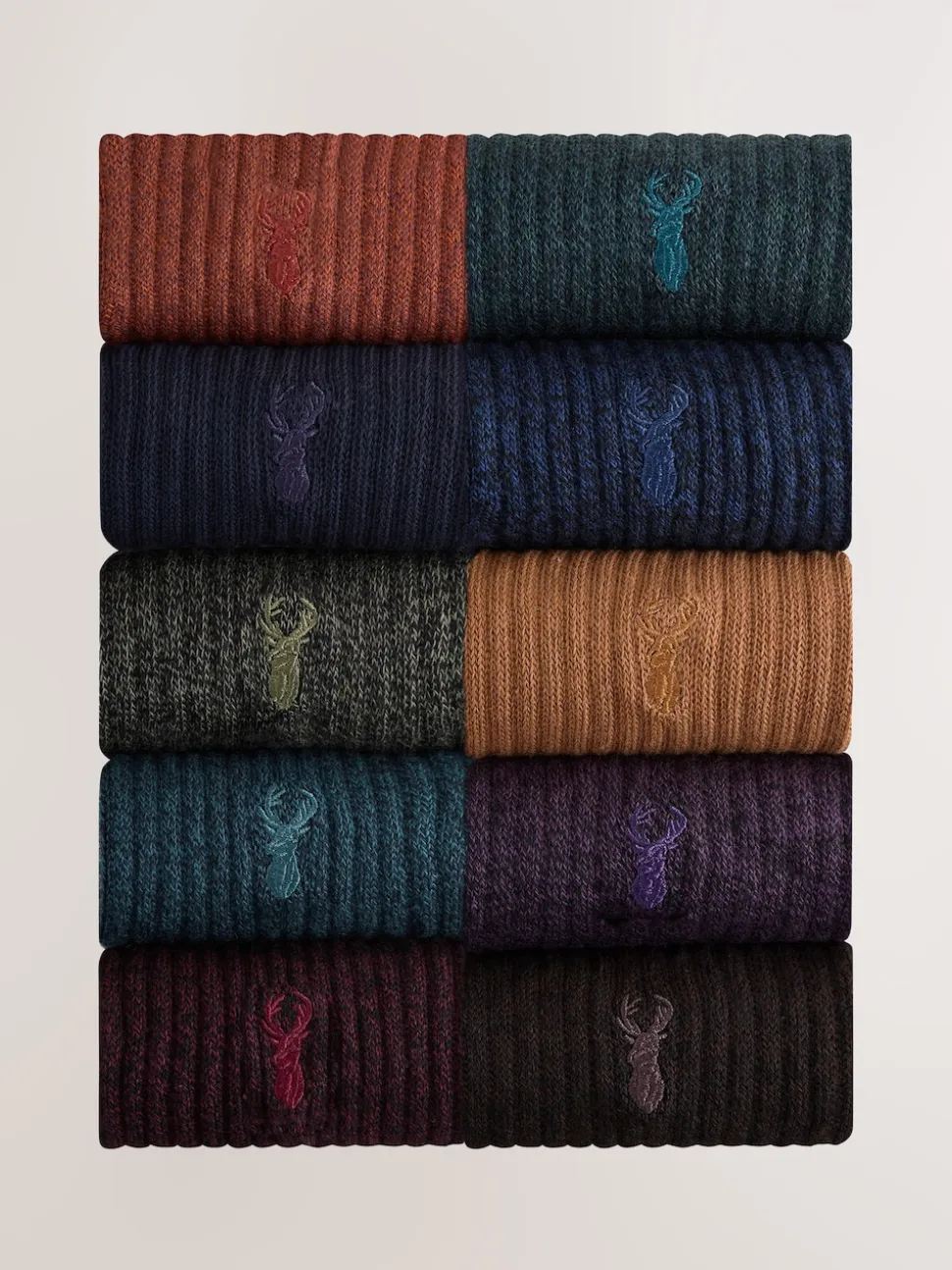 Rouge/Orange/Bleu – Lot de chaussettes épaisses brodées 10