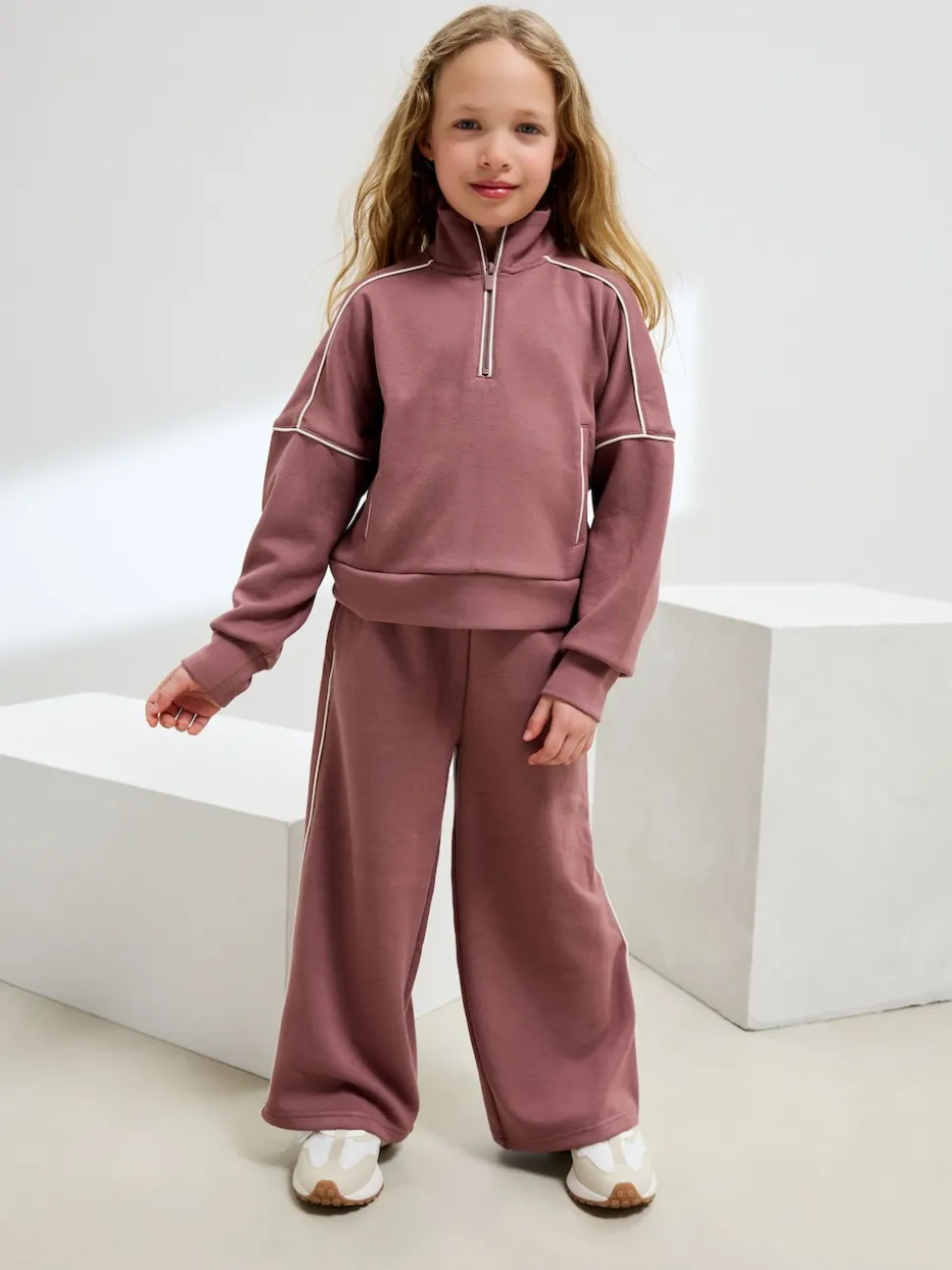 Rouille et rose – Ensemble pantalon de jogging super doux à col zippé et jambes Amples (3-16ans)