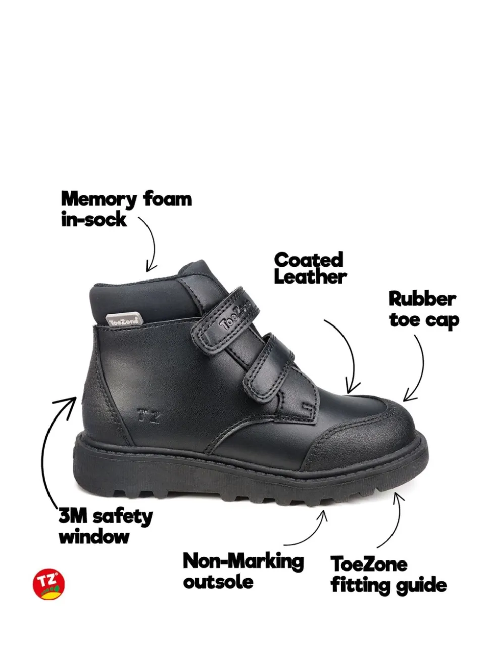 Toezone Felix Bottes noires à fermeture à bande anti-déchirure