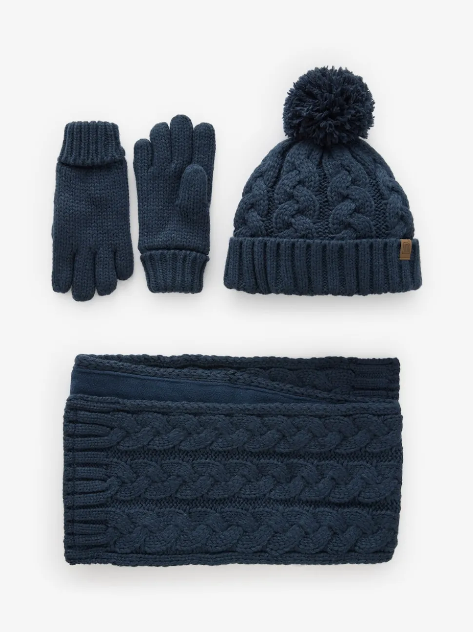 Tricot torsadé bleu marine – Ensemble 3 pièces chapeau, gants et écharpe (3-16ans)