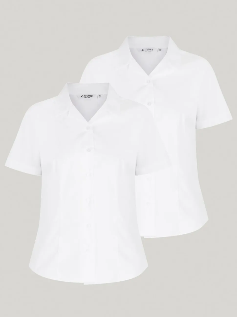 Trutex Blanc Cuban Collar Coupe ajustée Manches courtes 2 Pack School Chemises