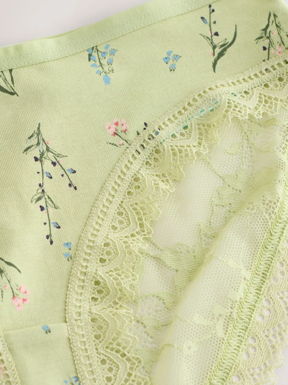 Vert à petites fleurs – Lot de 4 culottes en coton et dentelle