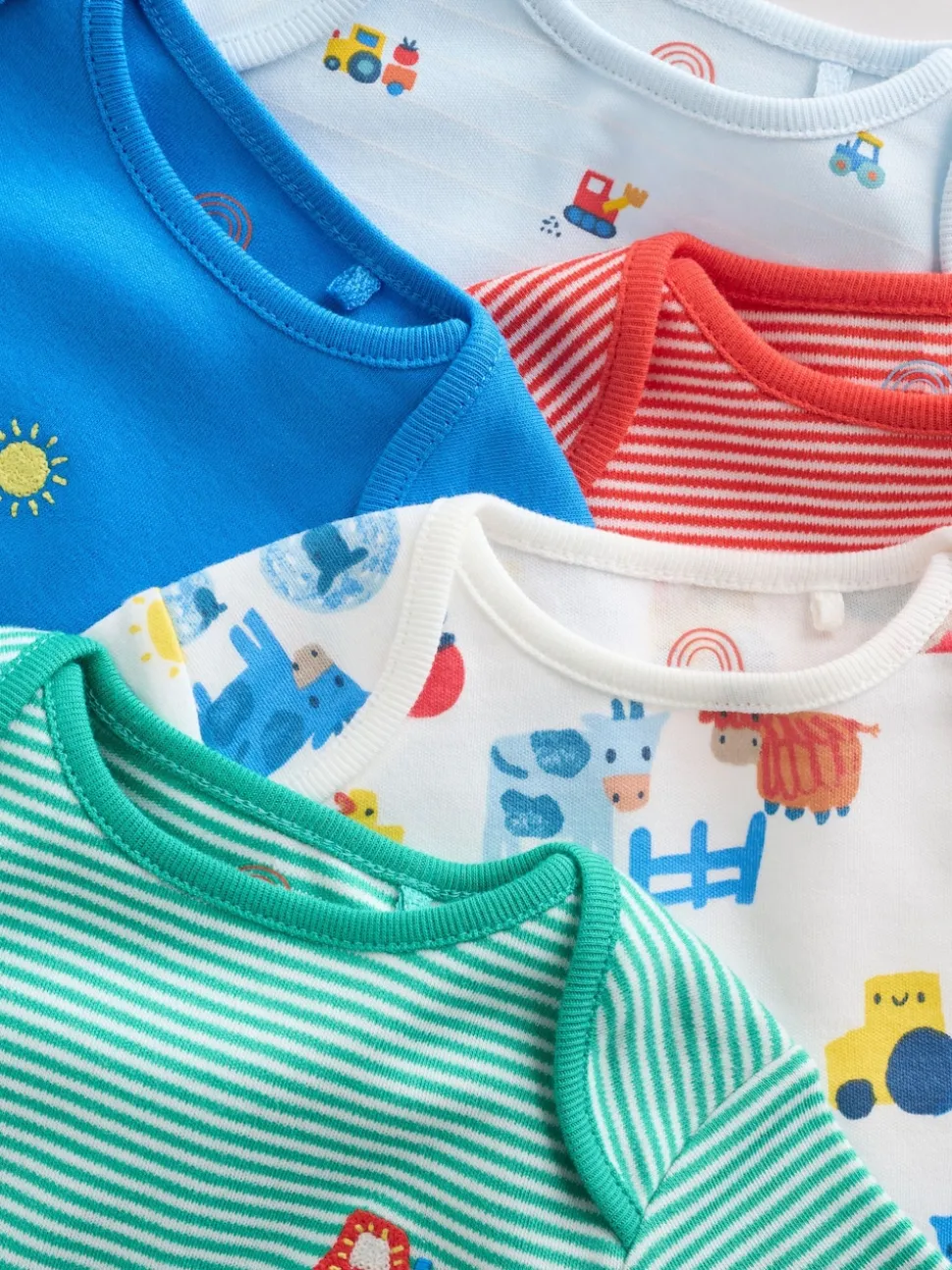 Vert motif ferme – Lot de 5 bodies bébé à manches courtes
