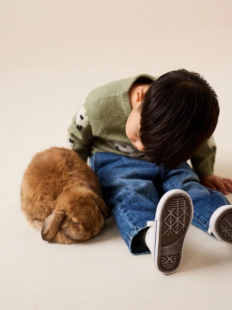 Vert mouton – Pull col rond en maille (3mois-7ans)