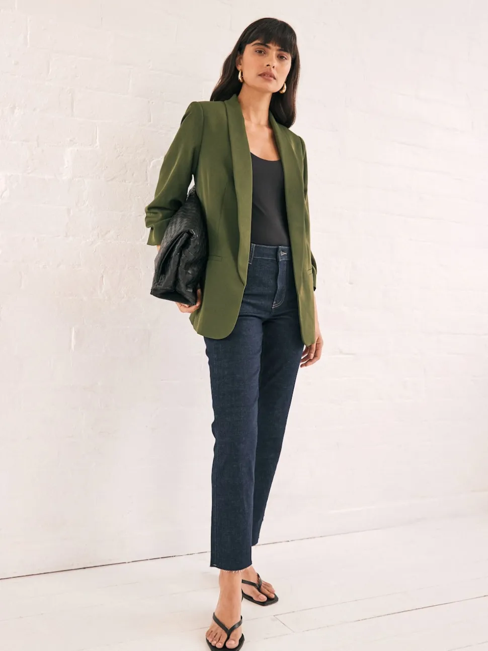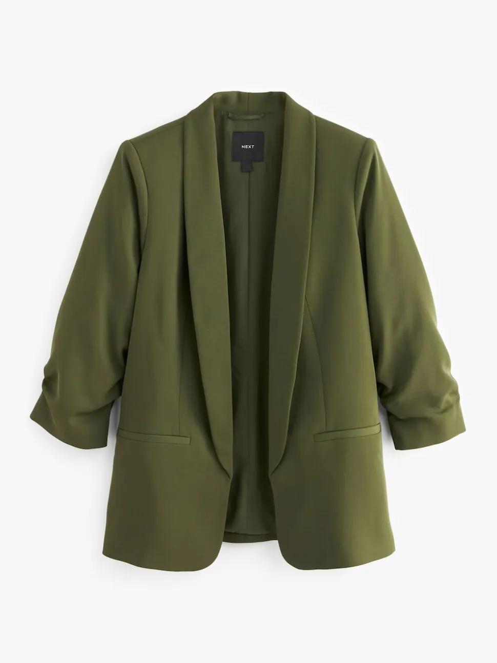 Vert olive – Blazer décontracté à manches froncées