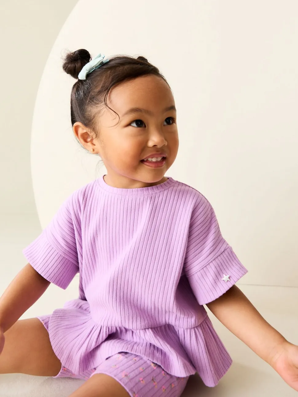 Violet lilas – Ensemble haut et short côtelé à manches courtes (3mois7ans)